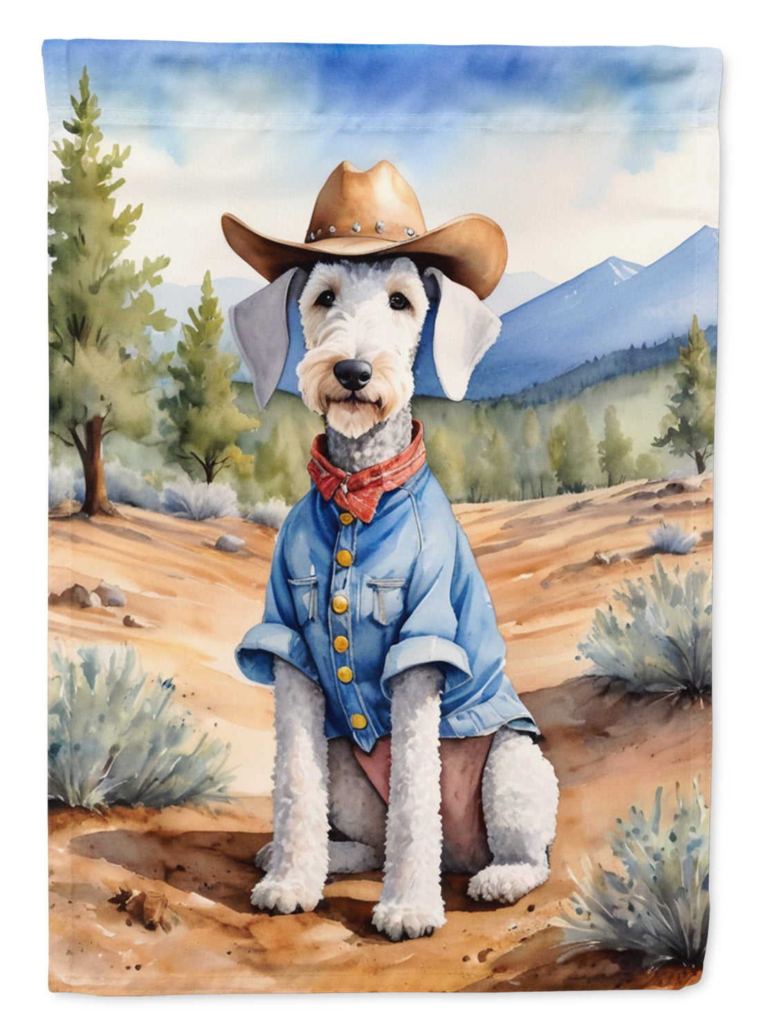 Welcome guests with a touch of rustic charm using this Outdoor Cowboy Garden Flag, perfect for creating a warm, Western-inspired entry. Made with durable, weather-resistant fabric, this Western Welcome Garden Flag holds up beautifully in any season, bringing a classic country feel to your yard or garden. With its vivid design, this Country-Themed Yard Flag makes an ideal addition to farmhouse or rustic decor. Whether for your home or as a thoughtful gift, it’s the perfect choice for outdoor decor enthusiasts.Decorate your space with our Bedlington Terrier artwork on a Garden Flag. Enhance the beauty of your garden, patio, or yard with Caroline's Treasures Decorative Garden Flag, proudly made in the USA. Crafted from two pieces of thick, double-sided polyester fabric, this 2-ply garden flag is designed to withstand various weather conditions, making it water-resistant and weatherproof. Featuring correctly readable words on both sides, this garden flag offers a delightful visual experience from any angle. With its heavier weight, it stands out among other garden flags, ensuring stability and durability even in wind, rain, and snow. Measuring approximately 11 1/4 inches by 15 1/2 inches, this flag allows you to personalize your outdoor decor. It comes with a 1 1/2-inch sleeve sewn in, allowing easy attachment to any standard garden flag stand or garden size porch hanger (sold separately). Make a statement in your outdoor space with Caroline's Treasures Decorative Garden Flag, a vibrant and high-quality flag that adds color and personality to your surroundings. Proudly made in the USA, it's a symbol of quality craftsmanship and attention to detail.