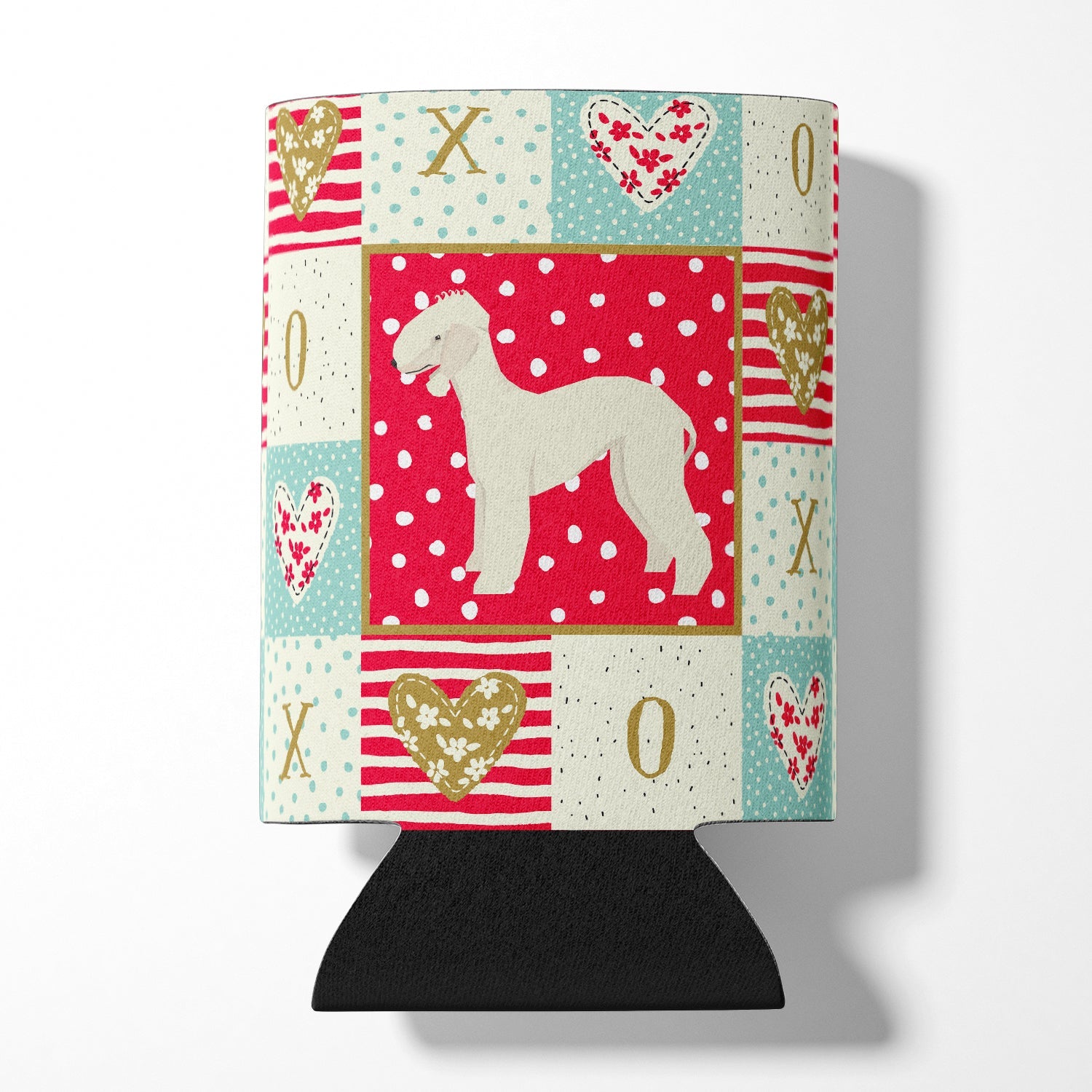 Decorate your space with our Valentine's Day Bedlington Terrier artwork on a Hugger. Introducing our Can or Bottle Hugger, a must-have accessory for your beverage enjoyment. Designed to perfectly fit any standard 12-ounce can, this can cooler is the ideal companion to keep your soda, beer, or any drink of your choice at the perfect temperature. Our can hugger is not just functional, it's a work of art. Featuring full-color artwork that's permanently dyed into the foam, this hugger promises a design that's fade-resistant and made to last, making your beverage stand out in style. The design isn't silk-screened, which ensures the vibrancy of the colors, offering you a long-lasting, appealing aesthetic. What sets our can hugger apart is its high-quality foam fabric, which is not only durable but also machine washable for easy maintenance. Whether you call it a huggie, can coolie, can cozie, or beer holder, this drink sleeve brings style and function together. Proudly designed, printed, and sewn in the USA, our Can or Bottle Hugger is an ideal addition to your beverage experience. Match it with one of our insulated coolers for a complete gift set, adding flair and convenience to your drink enjoyment.