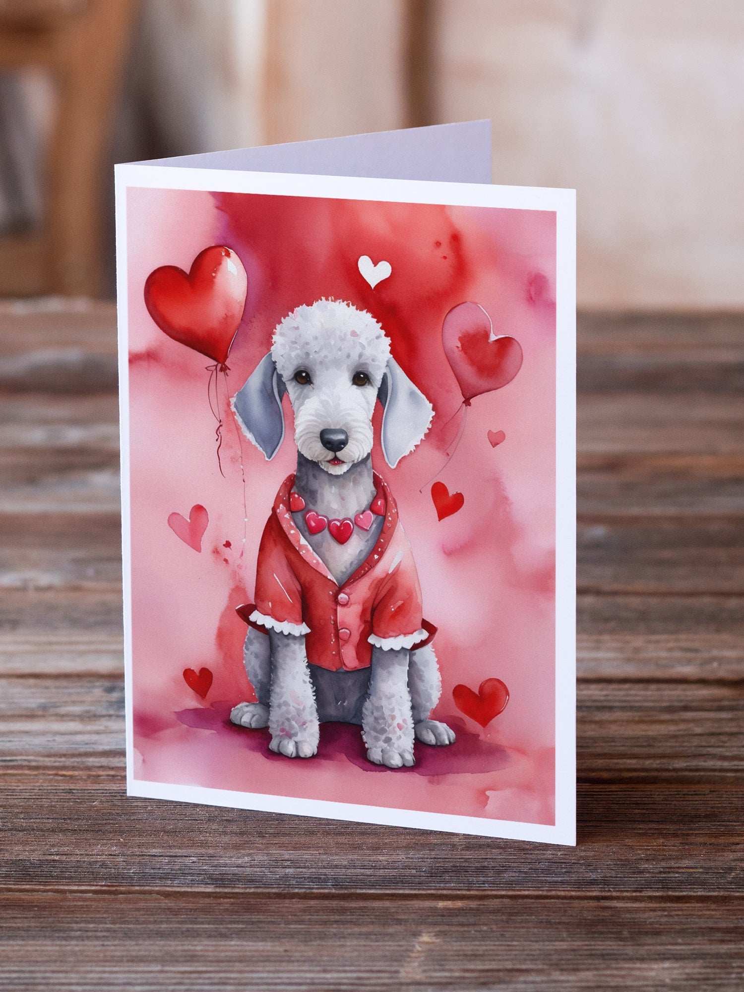 Decorate your space with our Valentine's Day Bedlington Terrier artwork on a . Celebrate special moments with Caroline's Treasures Printed Greeting Card Pack. This pack includes eight beautifully folded 5x7 cards, accompanied by eight matching white envelopes. With blank interiors, these cards provide ample space for your personalized messages and heartfelt holiday greetings. Each card features captivating full-color artwork, meticulously printed in our facility on high-quality 80 lb cover stock or 216 GSM. The super smooth finish of the white cards enhances the visual impact of the artwork, creating a truly stunning presentation. Designed by our talented in-house artists or licensed artists, the artwork on these cards showcases their creativity and attention to detail. From vibrant illustrations to captivating designs, each card tells its own unique story. Whether it's for birthdays, anniversaries, holidays, or any special occasion, Caroline's Treasures Greeting Card Pack is the perfect way to convey your heartfelt sentiments. Share joy, love, and warm wishes with these exquisite cards and make every moment unforgettable.