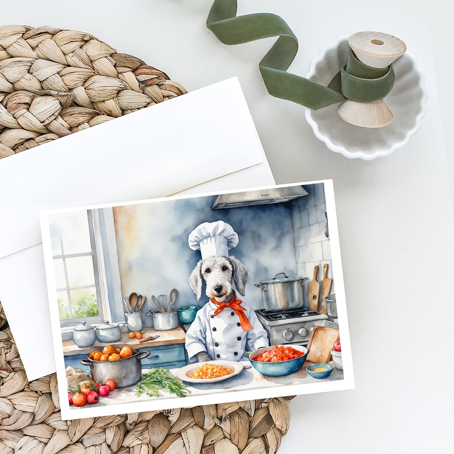 Decorate your space with our Bedlington Terrier artwork on a . Celebrate special moments with Caroline's Treasures Printed Greeting Card Pack. This pack includes eight beautifully folded 5x7 cards, accompanied by eight matching white envelopes. With blank interiors, these cards provide ample space for your personalized messages and heartfelt holiday greetings. Each card features captivating full-color artwork, meticulously printed in our facility on high-quality 80 lb cover stock or 216 GSM. The super smooth finish of the white cards enhances the visual impact of the artwork, creating a truly stunning presentation. Designed by our talented in-house artists or licensed artists, the artwork on these cards showcases their creativity and attention to detail. From vibrant illustrations to captivating designs, each card tells its own unique story. Whether it's for birthdays, anniversaries, holidays, or any special occasion, Caroline's Treasures Greeting Card Pack is the perfect way to convey your heartfelt sentiments. Share joy, love, and warm wishes with these exquisite cards and make every moment unforgettable.