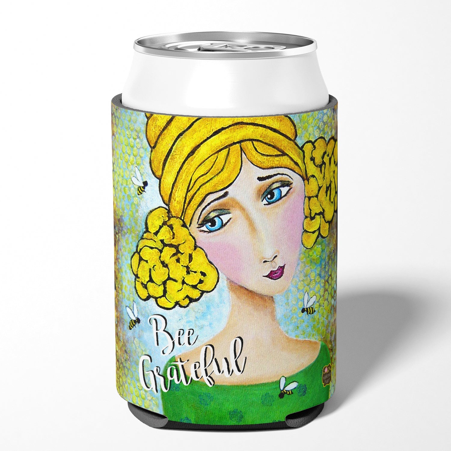 Bee Grateful Girl with Beehive Can or Bottle Hugger VHA3008CC