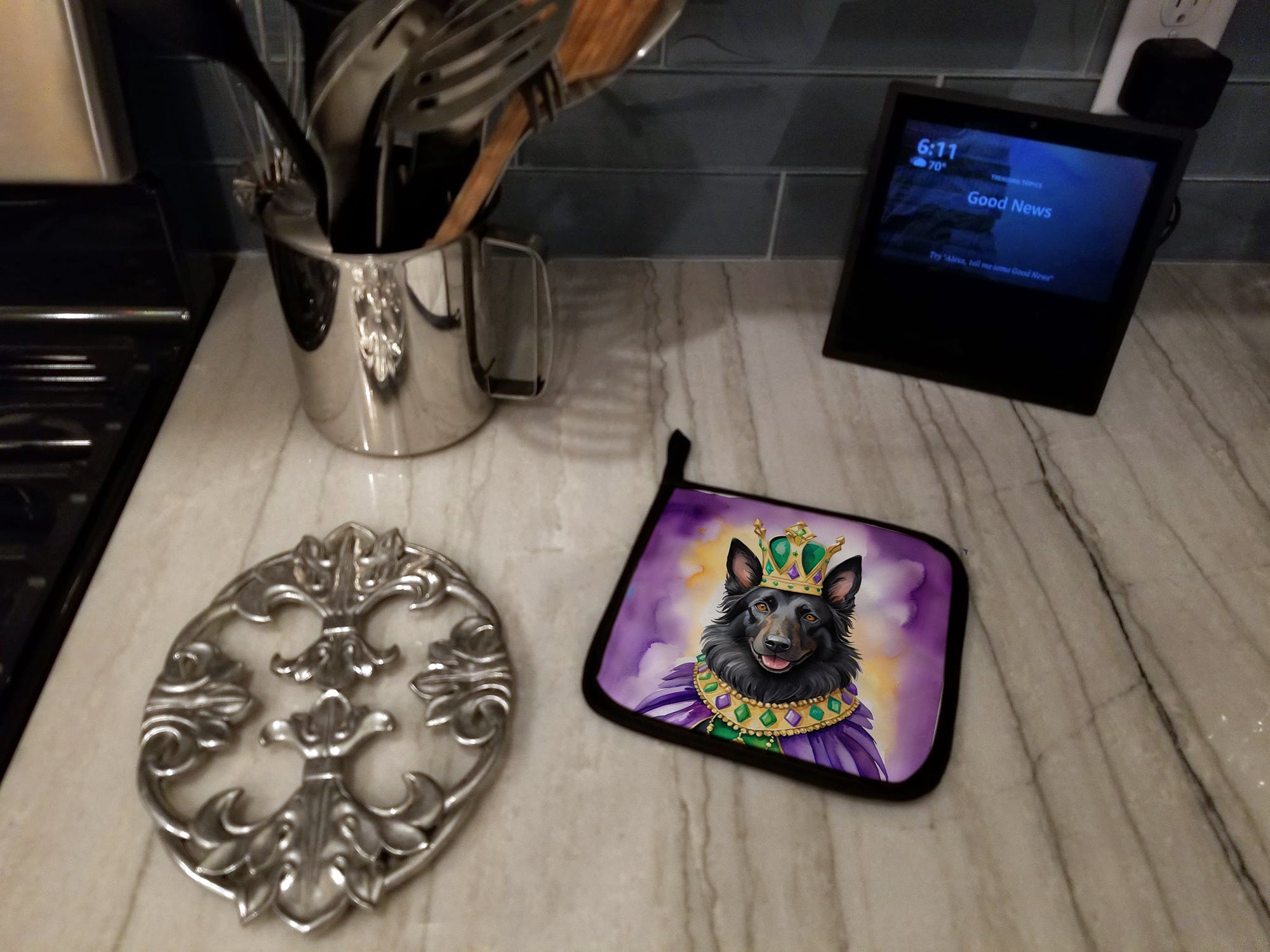 Pair of Pot Holders featuring breed specific Belgian Sheepdog artwork. Celebrate Mardi Gras with this Mardi Gras Pair of Pot Holders. A Pair of Pot Holders to match your kitchen decor. Made in the USA these are thick and functional. Full color artwork decorates the front polyester fabric of the hot pad and accented by a black trim. Use these at as a trivet for your Thanksgiving or Christmas tablescape. Filled with insulated fabric and quilted for durability. These colorful pot holders will make a great gift for your favorite home cook or executive chef. Each pot holder measures approximately 7 1/2 inches by 7 1/2 inches. A hanging tab is included.