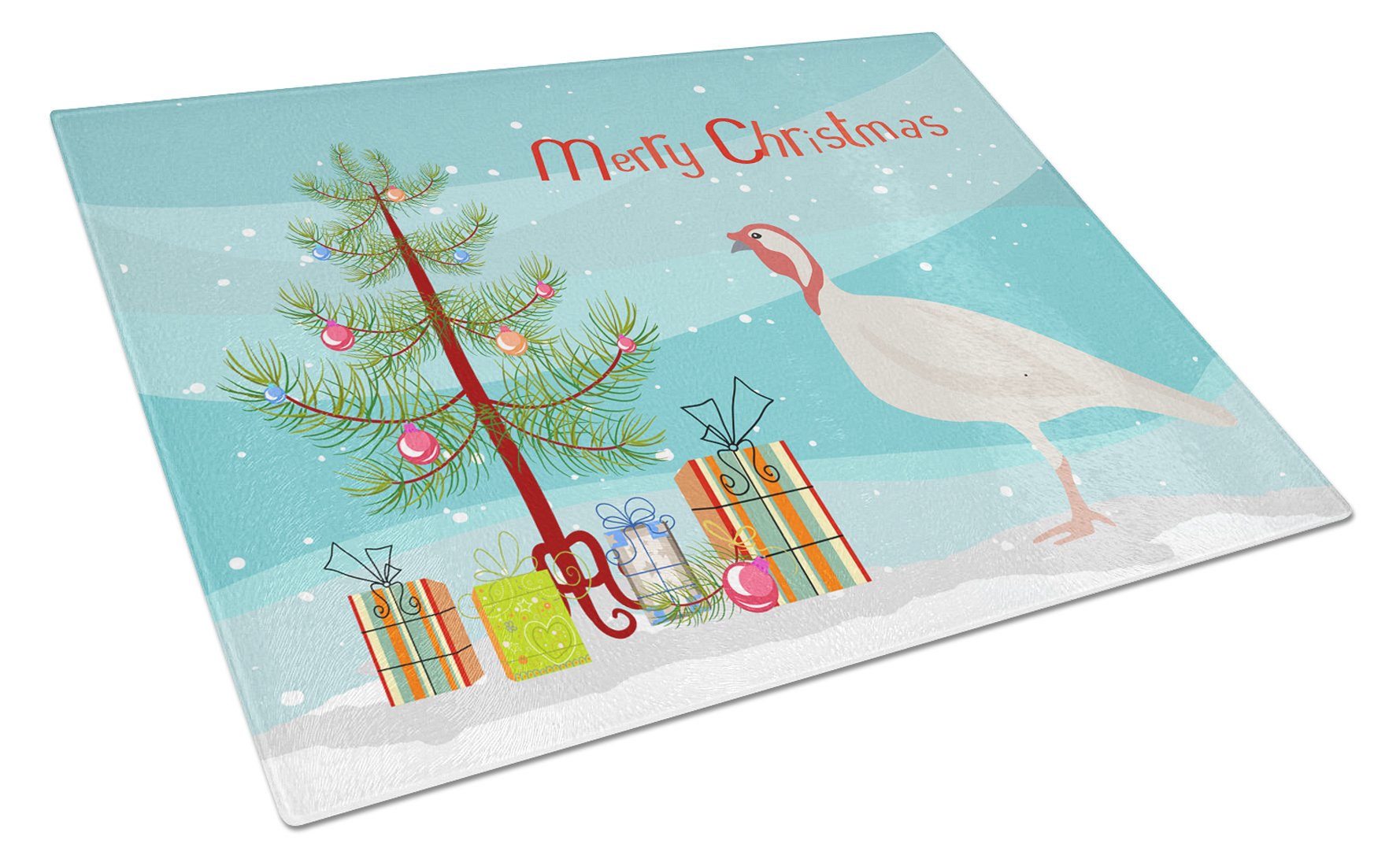 Decorate your space with our Christmas Beltsville Small White Turkey Hen artwork on a Cutting Board. Introduce your kitchen to the vibrant, large Decorative Glass Cutting Board from Caroline's Treasures. Crafted from resilient tempered glass, this board is not only a utilitarian necessity but also a colorful art piece. With its generous dimensions of 15 inches in height and 12 inches in length, it offers ample space for all your cutting needs. Every piece showcases captivating artwork from distinguished artists, bringing an aesthetic edge to your kitchen. Beyond its attractive design, this cutting board ensures your countertop stays pristine and unscathed, owing to its heat-resistant properties. Engineered with user convenience in mind, it features non-skid feet for stability, and rounded corners for additional safety. Its robust construction renders it virtually unbreakable, guaranteeing longevity. The board comes with protective feet bumpers, maintaining its position during use. This product is recommended to be hand washed only. Proudly printed and assembled in the United States, this cutting board exemplifies superior craftsmanship. With Caroline's Treasures' Decorative Glass Cutting Board, you're investing in a blend of functionality and artistic flair.