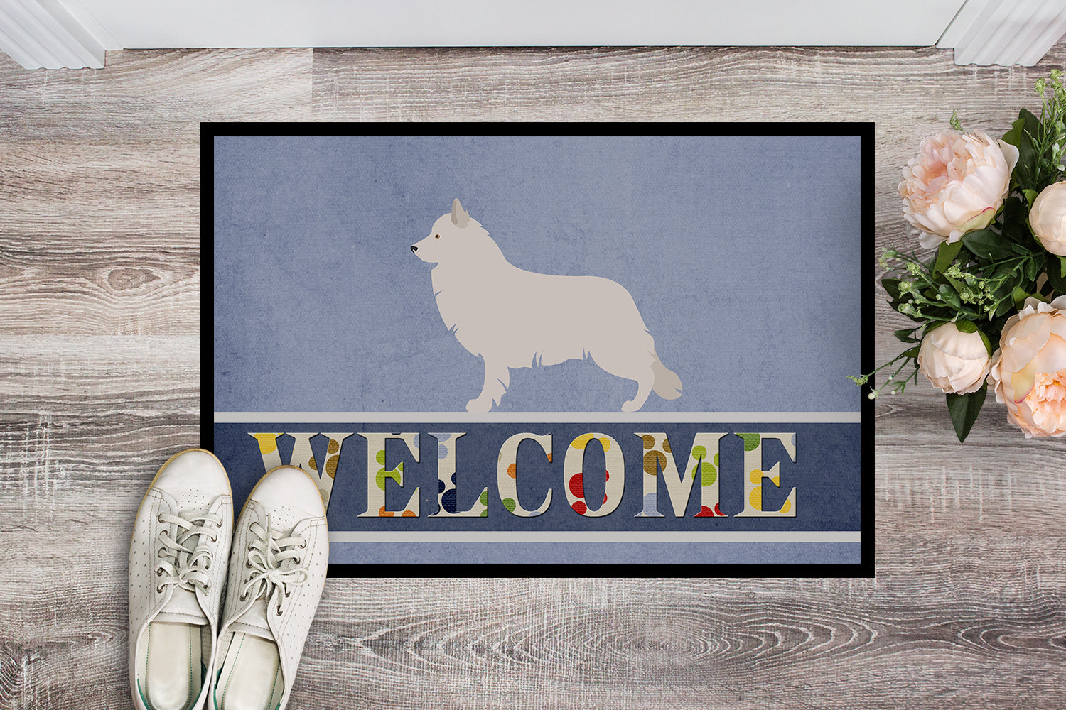 Decorate your space with our Berger Blanc Suisse artwork on a Doormat. Welcome your guests in style with our Artwork Door Mat, designed to withstand almost any weather condition. This mat, measuring approximately 18 by 27 inches, is held together by durable black binding tape. Its top layer, composed of polyester felt, is dyed with the eye-catching image you see on the mat. A few layers below provide the mat with stability, while its rubber bottom is stamped to help prevent slipping and ensures safety. Our mat works wonderfully as both an indoor or outdoor door mat. For cleaning, simply hose it off with water or use a power washer - no need for any cleaner that produces suds. Avoid scrubbing with a brush, instead, opt for the vacuum on floor setting. Designed manufactured and printed in the USA, this mat is a perfect addition to your porch, outdoor kitchen, entryway, or any indoor space. Its unique design makes it a charming decorative rug that greets your guests and adds a stylish touch to your home decor.