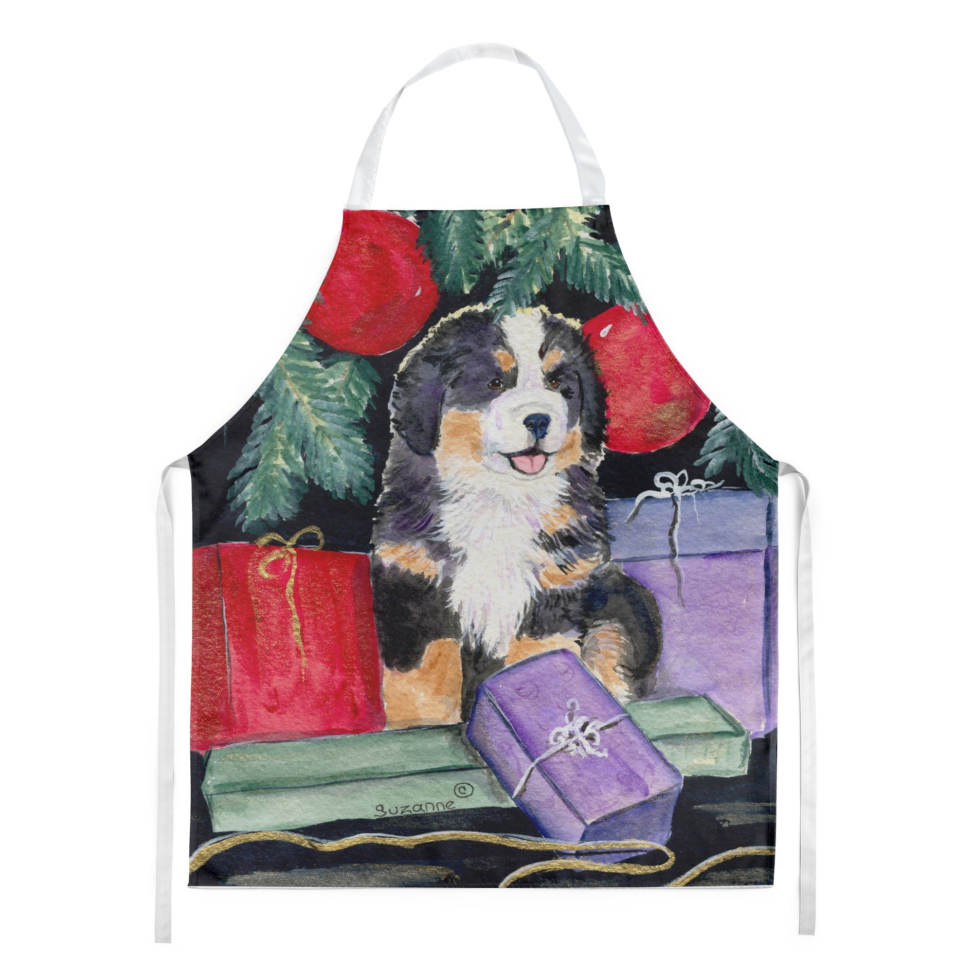 Decorate your space with our Bernese Mountain Dog artwork on a Apron. Elevate your cooking, baking, and grilling experiences with our versatile Kitchen or BBQ Apron. This Bib Style apron isn't just limited to culinary activities - it also serves as an excellent baking apron, artist apron, server apron, gardening apron, or even a dog grooming apron. The apron showcases vibrant full-color artwork contributed by one of our talented artists, bringing a dash of style to your daily tasks. With dimensions of approximately 27"W x 30"H, it provides ample coverage to protect your clothing from spills and splashes. Our apron is meticulously crafted from 100% Ultra Spun Polyester, known for its durability and lightweight nature. The apron comes with white tie straps, ensuring a comfortable and adjustable fit for all. It's a perfect choice for kitchen apron enthusiasts, whether you are a woman or a man. Designed for easy maintenance, this apron is fully machine washable. The quick-drying polyester material actively reduces staining, keeping your apron looking fresh and new for longer. Our beautifully designed apron isn't just a functional kitchen accessory - it's a fashion statement in the culinary world!