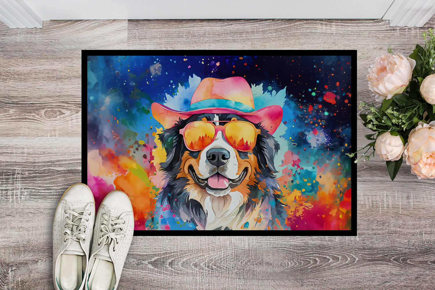 Decorate your space with our Bernese Mountain Dog artwork on a Doormat. Bring a bit of Summer into your home with a Summer Doormat. Welcome your guests in style with our Artwork Door Mat, designed to withstand almost any weather condition. This mat, measuring approximately 18 by 27 inches, is held together by durable black binding tape. Its top layer, composed of polyester felt, is dyed with the eye-catching image you see on the mat. A few layers below provide the mat with stability, while its rubber bottom is stamped to help prevent slipping and ensures safety. Our mat works wonderfully as both an indoor or outdoor door mat. For cleaning, simply hose it off with water or use a power washer - no need for any cleaner that produces suds. Avoid scrubbing with a brush, instead, opt for the vacuum on floor setting. Designed manufactured and printed in the USA, this mat is a perfect addition to your porch, outdoor kitchen, entryway, or any indoor space. Its unique design makes it a charming decorative rug that greets your guests and adds a stylish touch to your home decor.