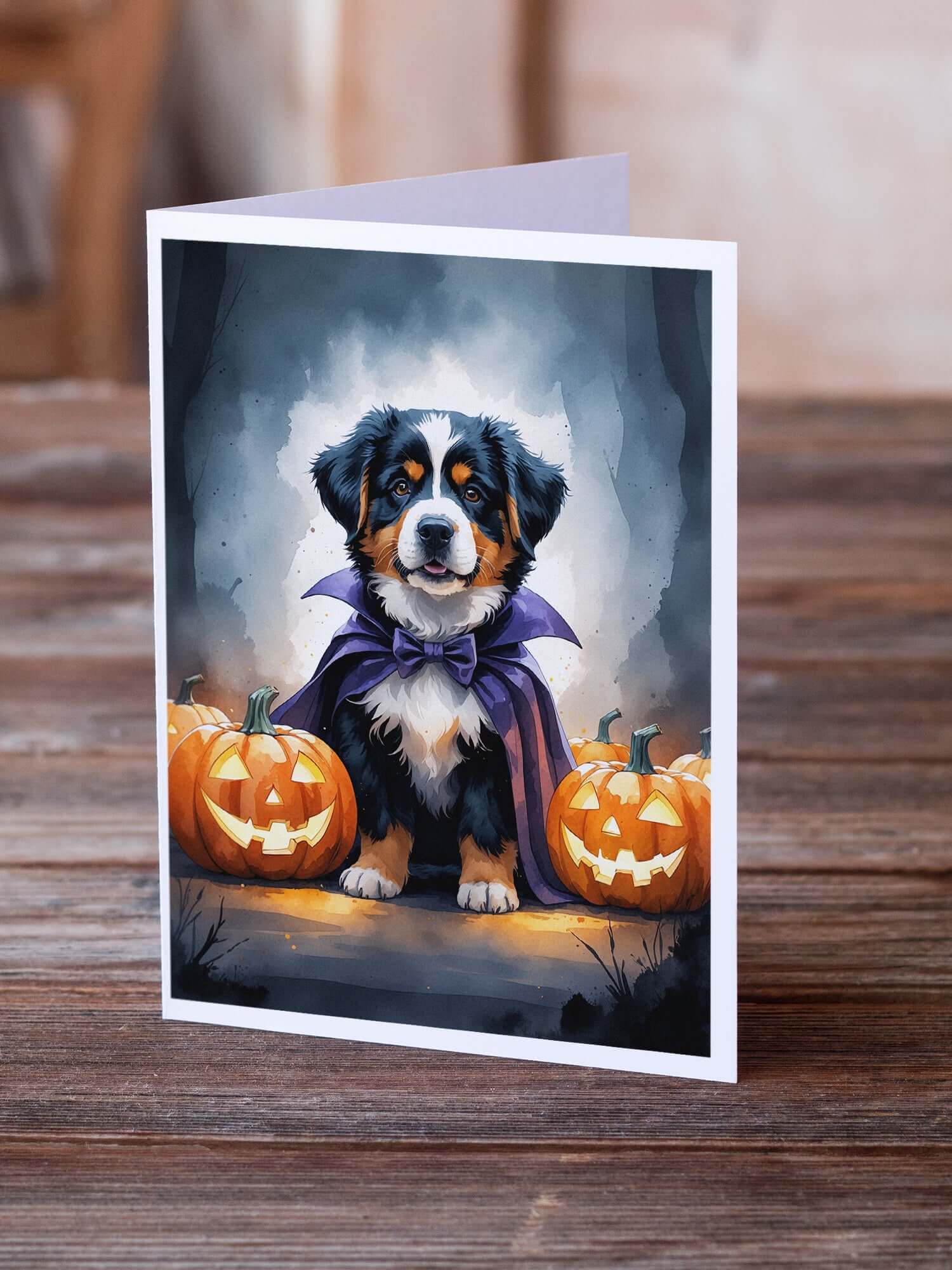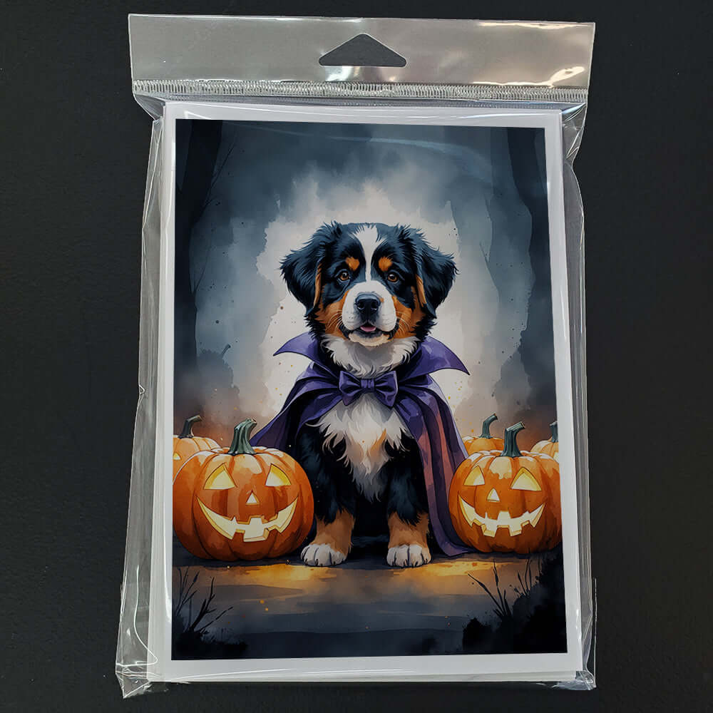 Greeting Cards Pack of 8 featuring breed specific Bernese Mountain Dog artwork. Celebrate Halloween with this Halloween . Celebrate special moments with Caroline's Treasures Printed Greeting Card Pack. This pack includes eight beautifully folded 5x7 cards, accompanied by eight matching white envelopes. With blank interiors, these cards provide ample space for your personalized messages and heartfelt holiday greetings. Each card features captivating full-color artwork, meticulously printed in our facility on high-quality 80 lb cover stock or 216 GSM. The super smooth finish of the white cards enhances the visual impact of the artwork, creating a truly stunning presentation. Designed by our talented in-house artists or licensed artists, the artwork on these cards showcases their creativity and attention to detail. From vibrant illustrations to captivating designs, each card tells its own unique story. Whether it's for birthdays, anniversaries, holidays, or any special occasion, Caroline's Treasures Greeting Card Pack is the perfect way to convey your heartfelt sentiments. Share joy, love, and warm wishes with these exquisite cards and make every moment unforgettable.