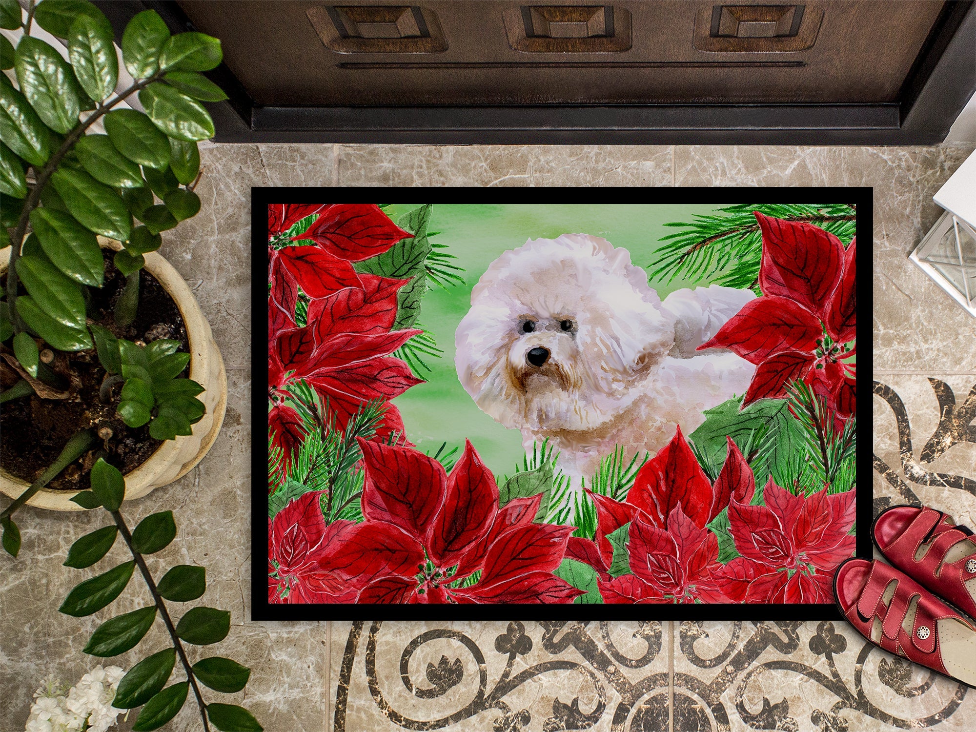 Bichon Frise #2 Poinsettas Doormat - 18x27 Decorative Floor Mat – Indoor/Outdoor Rug with Artistic Flair CK1353MAT