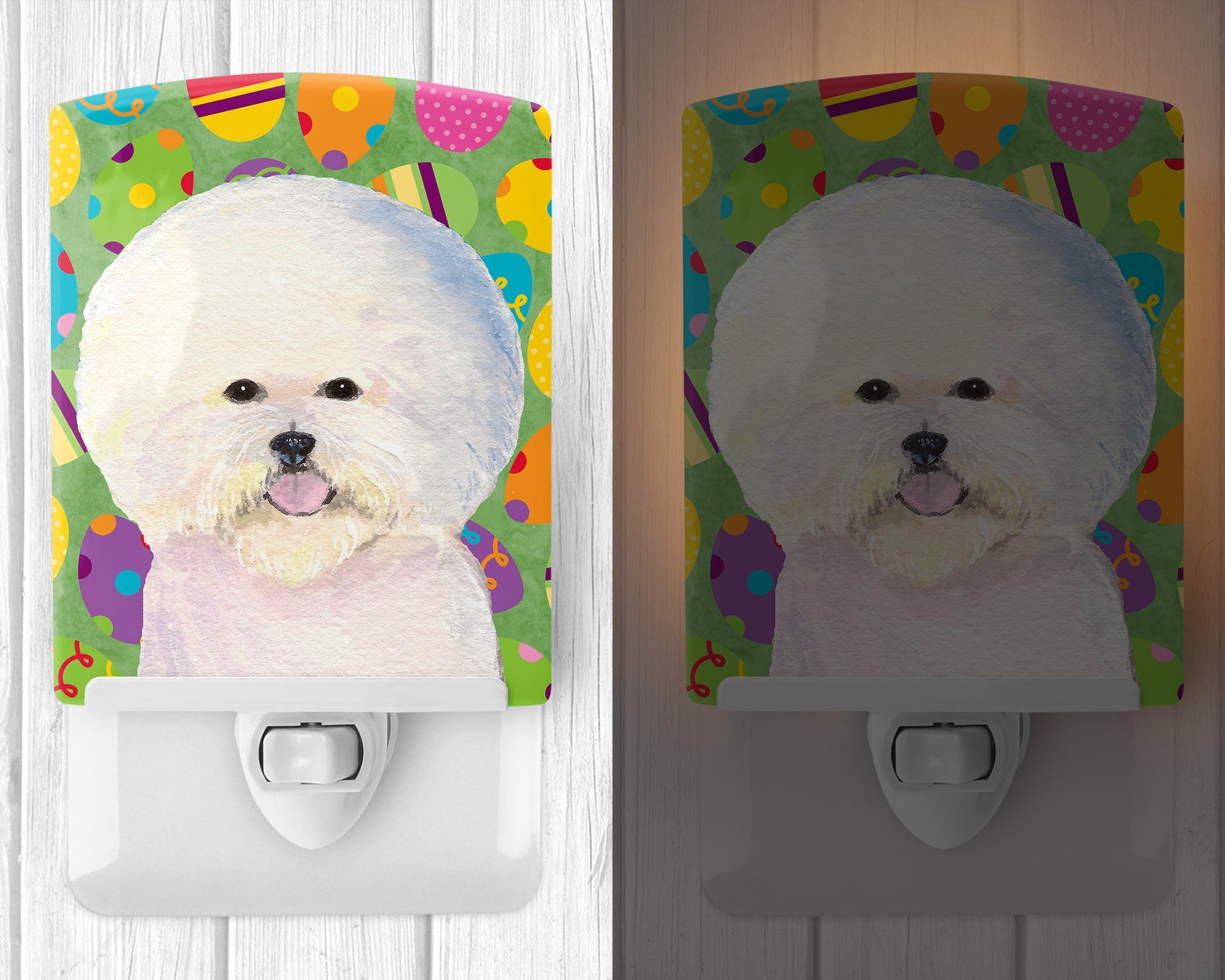 Decorate your space with our Easter Bichon Frise artwork on a Night Light. Introduce a splash of artistic flair and subtle illumination to your space with the Decorative Ceramic Night Light from Caroline's Treasures. Perfect for any room, this night light seamlessly blends functionality with an aesthetic appeal, offering a stylish solution to brighten up dark corners of your home or office. Boasting a six-inch high by four-inch wide ceramic tile at the front, it showcases vivid, full-color artwork from distinguished artists, transforming a simple utility into a vibrant art piece. The artwork is securely encased in a robust metal holder, ensuring durability and longevity. Two screws are provided to firmly affix the tile into the holder. The holder extends three inches deep, housing an included bulb that emits a soft, welcoming glow. This product meets all safety standards, as evidenced by its UL approval. Proudly made in the United States from imported components, this Decorative Ceramic Night Light is not just a functional device; it's a statement piece that enhances the ambiance of your surroundings.