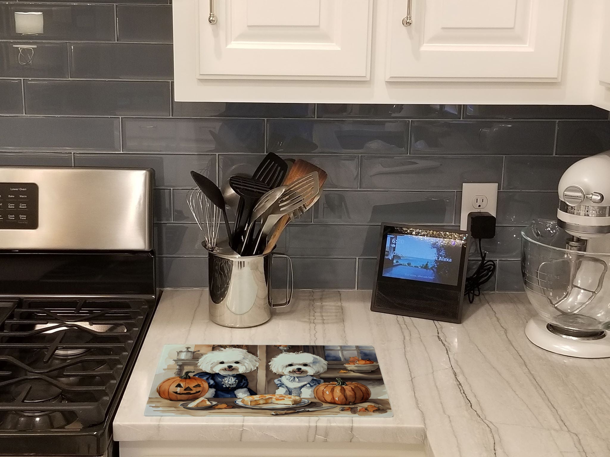 Decorate your space with our Halloween Bichon Frise artwork on a Cutting Board. Bring a bit of Fall into your home with a Fall Cutting Board. Introduce your kitchen to the vibrant, large Decorative Glass Cutting Board from Caroline's Treasures. Crafted from resilient tempered glass, this board is not only a utilitarian necessity but also a colorful art piece. With its generous dimensions of 15 inches in height and 12 inches in length, it offers ample space for all your cutting needs. Every piece showcases captivating artwork from distinguished artists, bringing an aesthetic edge to your kitchen. Beyond its attractive design, this cutting board ensures your countertop stays pristine and unscathed, owing to its heat-resistant properties. Engineered with user convenience in mind, it features non-skid feet for stability, and rounded corners for additional safety. Its robust construction renders it virtually unbreakable, guaranteeing longevity. The board comes with protective feet bumpers, maintaining its position during use. This product is recommended to be hand washed only. Proudly printed and assembled in the United States, this cutting board exemplifies superior craftsmanship. With Caroline's Treasures' Decorative Glass Cutting Board, you're investing in a blend of functionality and artistic flair.