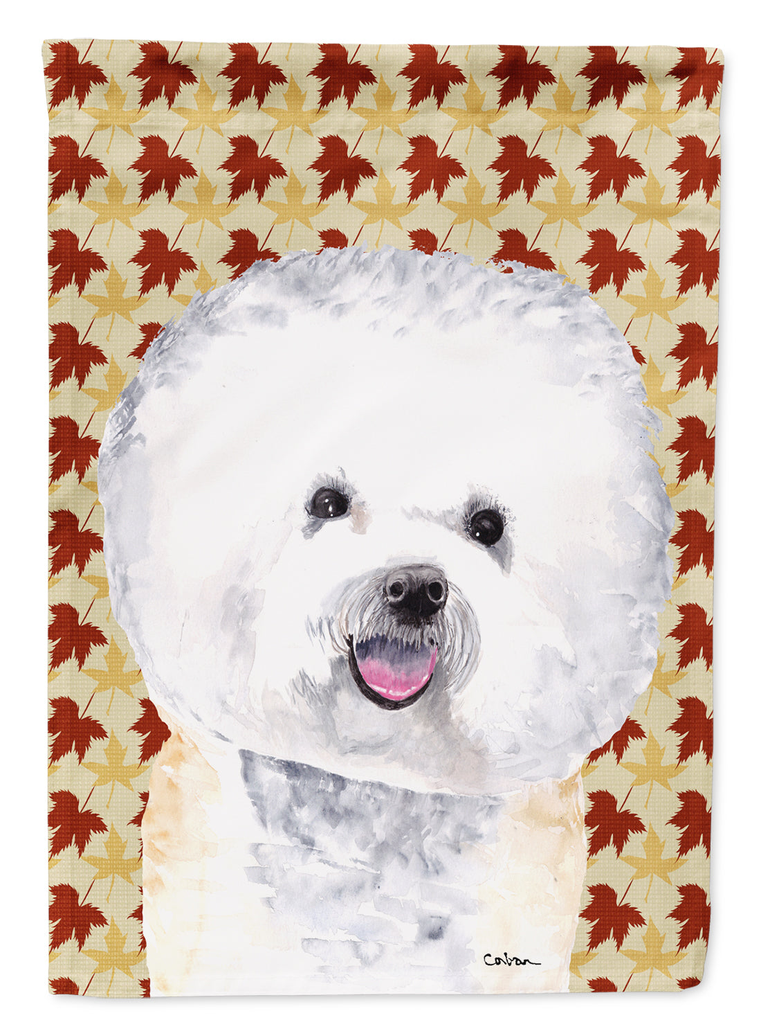 Bichon Frise Fall Leaves Portrait Flag Canvas House Size