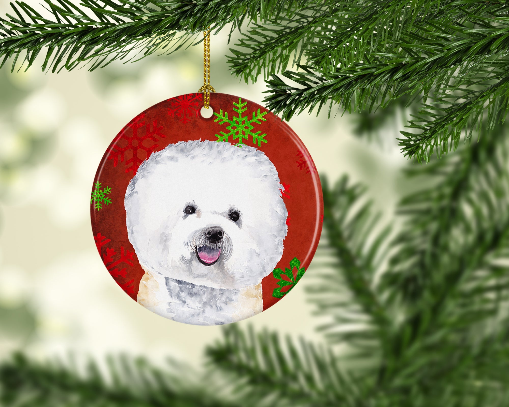 Decorate your space with our Christmas Bichon Frise artwork on a Ornament. Add a touch of personalized charm to your Christmas tree this holiday season with our Ceramic Ornament. Measuring 2.8125 inches in diameter, this round porcelain ornament beautifully reflects your festive lights, enhancing your holiday decor. The gloss surface sets off the vibrant, full-color artwork contributed by one of our talented artists, bringing a pop of color and joy to your tree. This Ceramic Ornament doesn't stop at being merely decorative. The white back is designed for personalization. Write a heartfelt message, mark a special year, or inscribe a date with a paint pen or a permanent marker to create a treasured memento. Please ensure you allow any personalization to dry thoroughly before handling to maintain the pristine finish. Included with the ornament is a delicate gold cord for easy hanging. Made in the USA, this Ceramic Ornament makes an exceptional gift for a pet sitter, teacher, family member, or anyone you wish to share a little Christmas magic with. With its blend of style, charm, and personal touch, it's a meaningful addition to any Christmas tree.