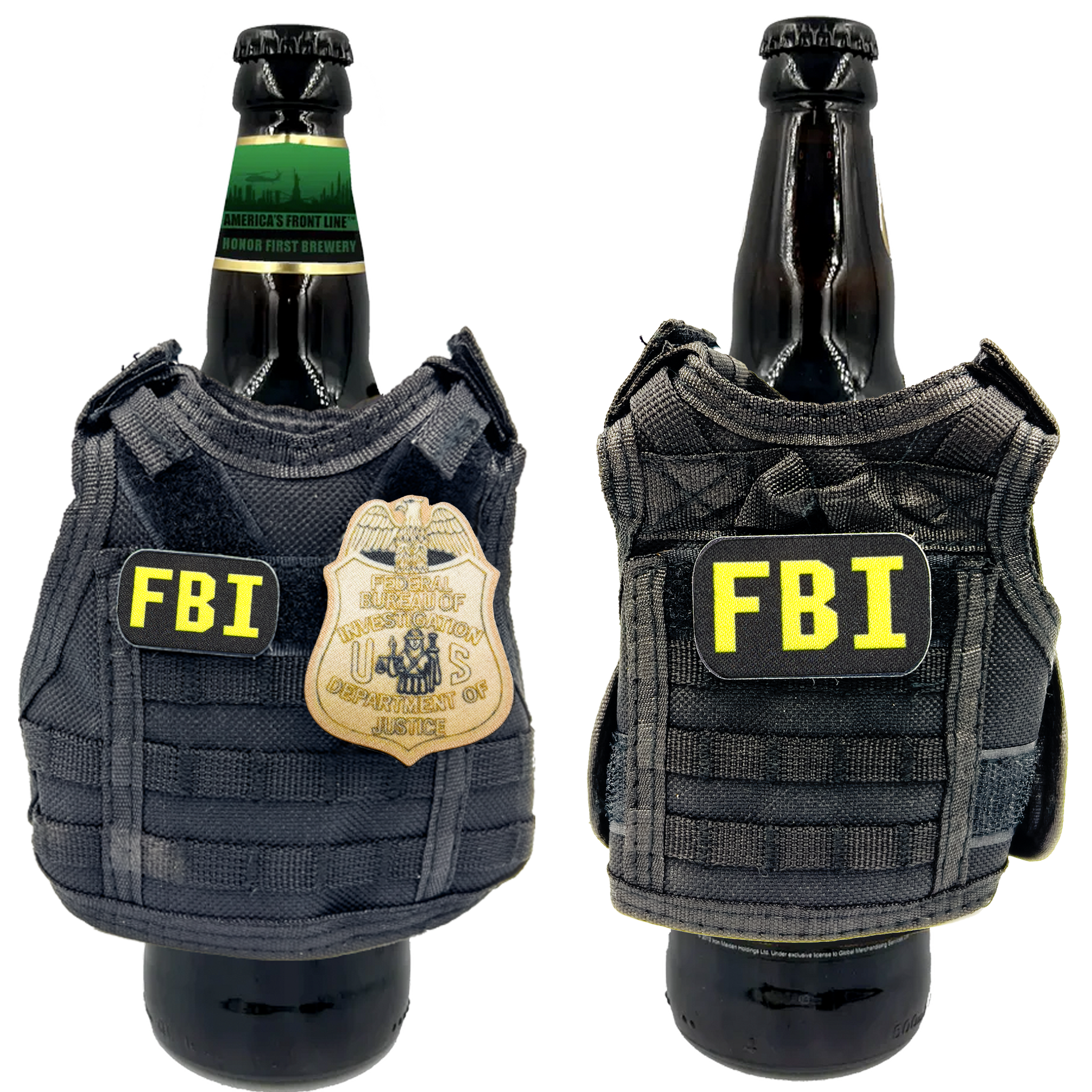 BL1-014 FBI SPECIAL AGENT Tactical Beverage Bottle or Can Cooler Vest with removable patches perfect gift for Challenge Coin collectors