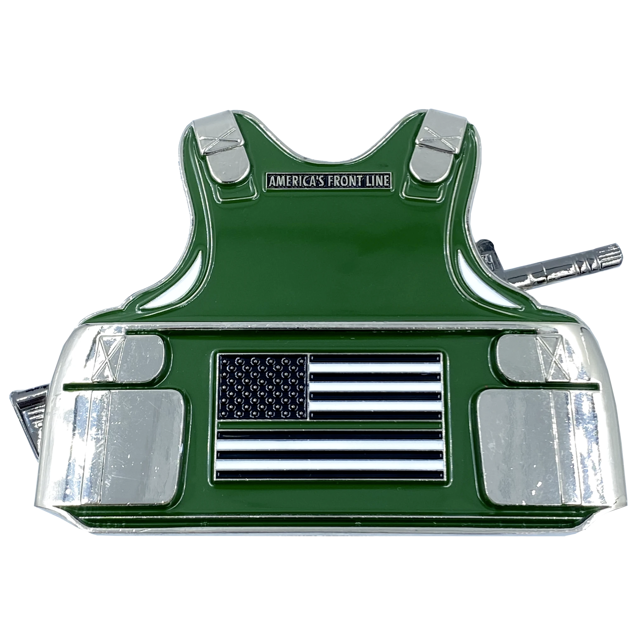 Large 4 inch challenge coin. Over a quarter inch thick with flat bottom so it can stand on its own without a display stand.