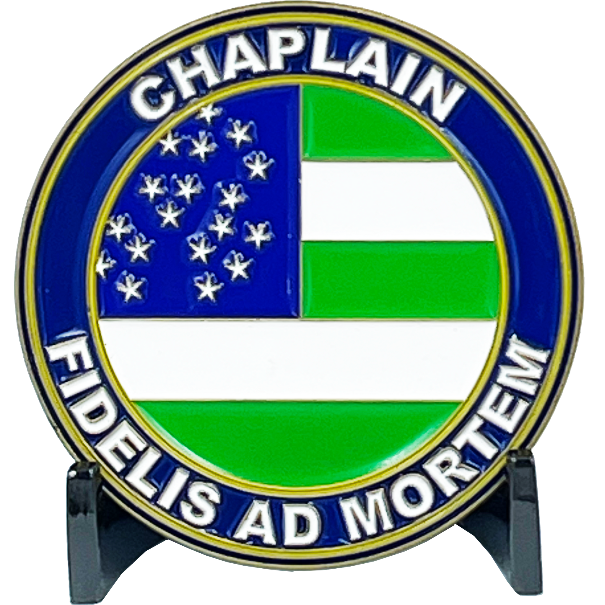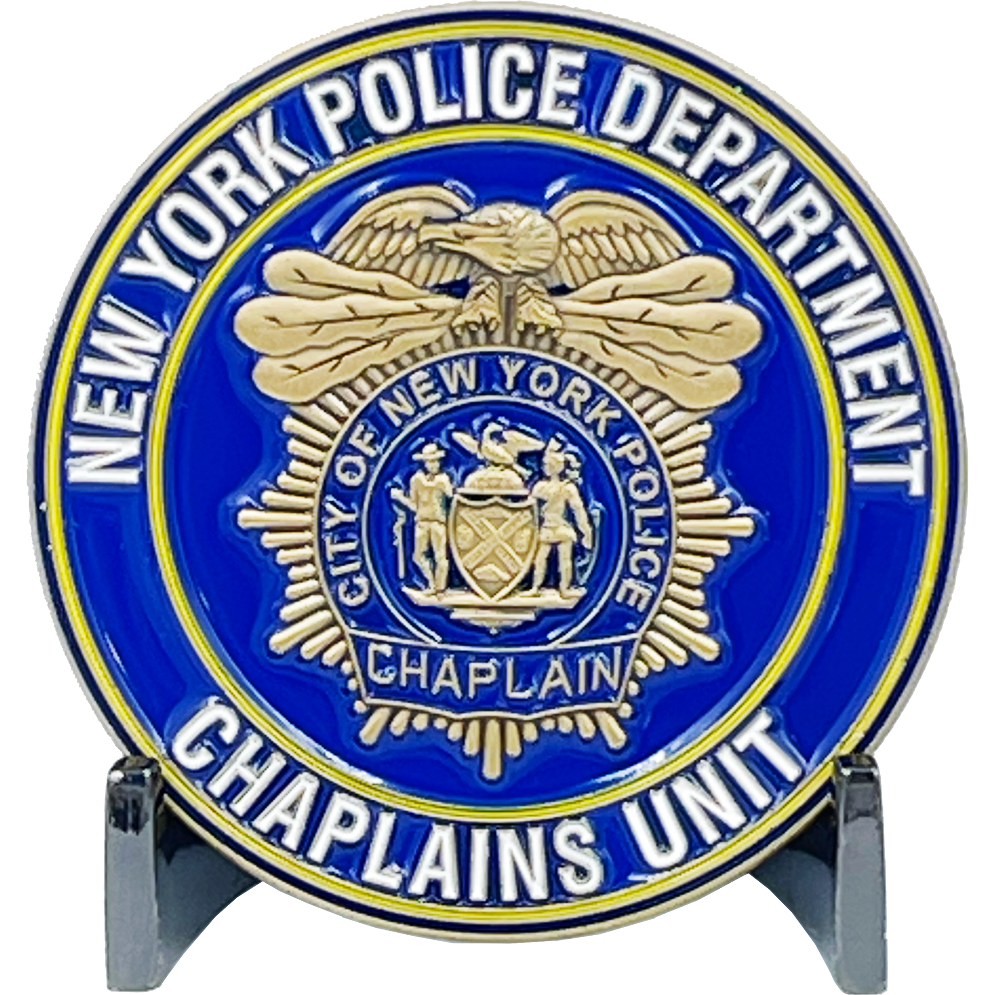 BL8-008 New York Police Department NYPD New York City Police Officer CHAPLAIN Challenge Coin NYC Police flag