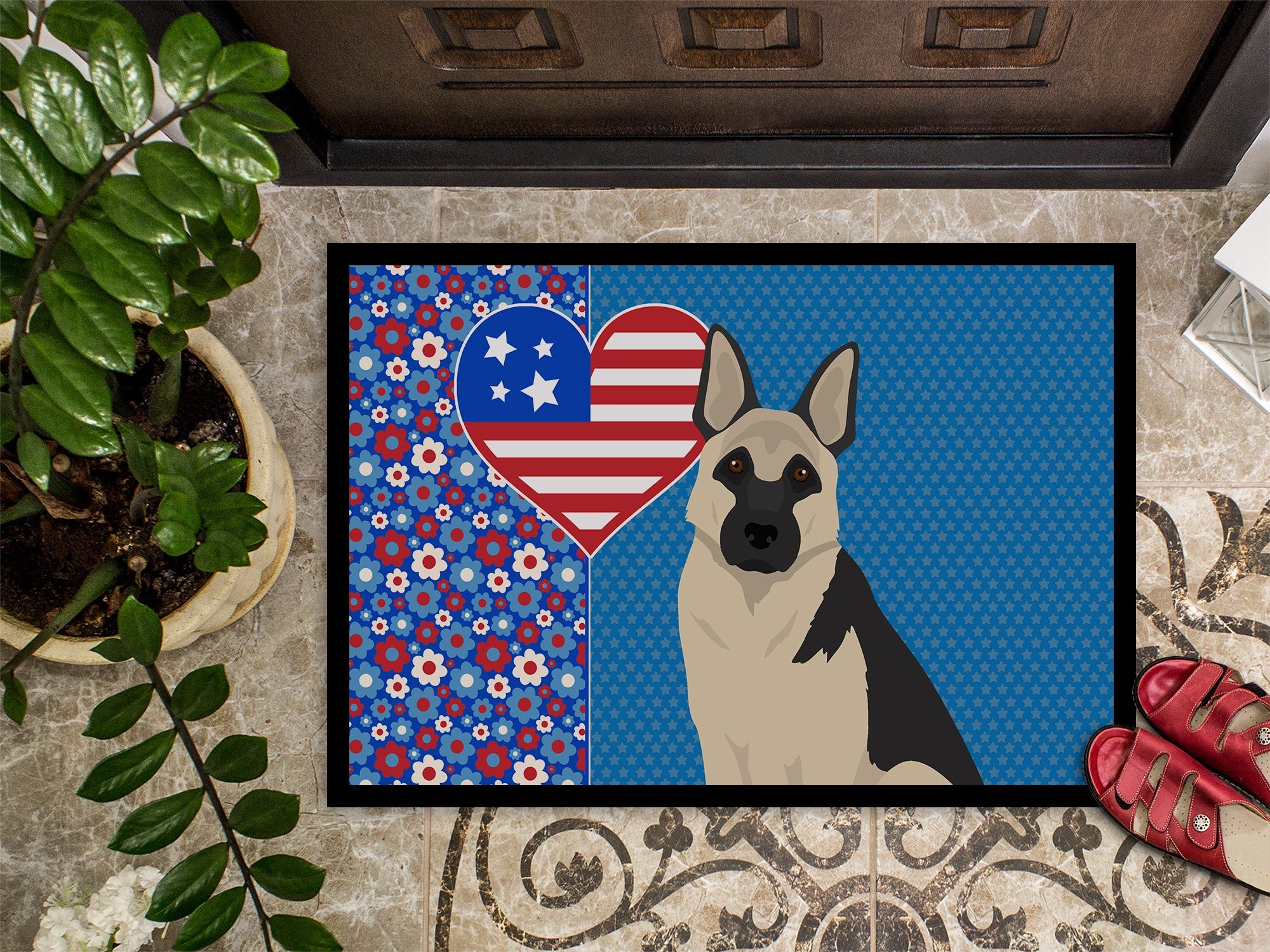 Black and Silver German Shepherd USA American Doormat - 24x36 Decorative Floor Mat – Indoor/Outdoor Rug with Artistic Flair