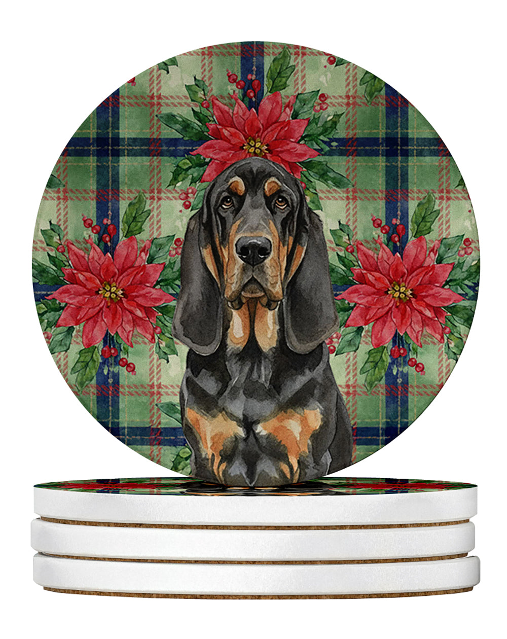 Black and Tan Bloodhound Christmas PoinsettIas Large Sandstone Coasters Pack of 4