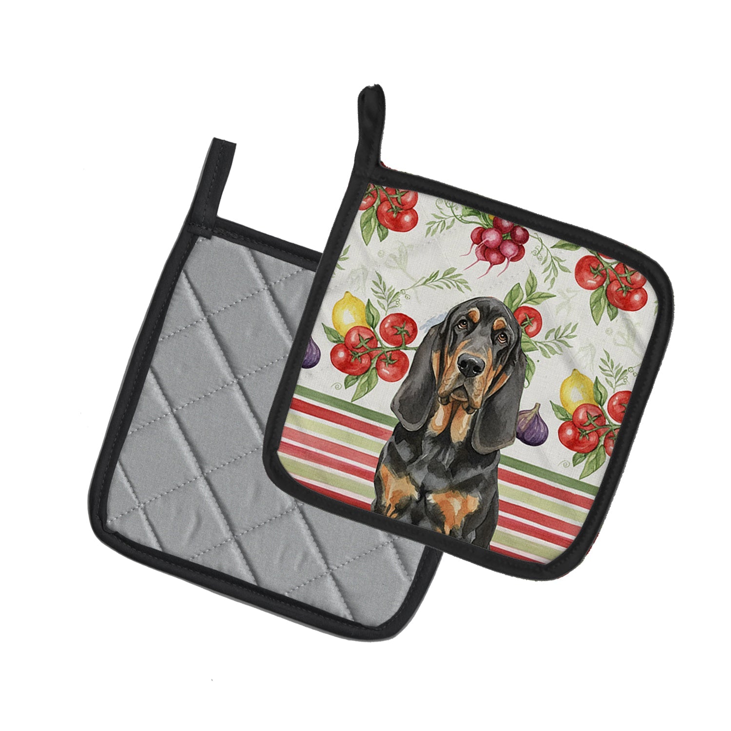 Pair of Pot Holders featuring breed specific Bloodhound artwork. Add warmth, personality, and function to your kitchen with our Vegetables Pot Holder Pair. Each set includes two quilted hot pads, featuring original full-color watercolor artwork on a soft polyester front accented by black trim. Crafted with multiple layers for performance: Top Layer: Vibrant artwork permanently dyed into polyester fabric. Middle Layer: US-manufactured insulated material with breathable polyester fibers and a reflective metalized film that reflects heat back to its source. Bottom Layer: A silver heat-resistant backing for extra protection. Each pot holder measures 7.5" x 7.5", includes a hanging tab, and is quilted for durability. Use them to protect your hands, countertops, and tabletops — or as decorative trivets for Thanksgiving, Christmas, or everyday meals.