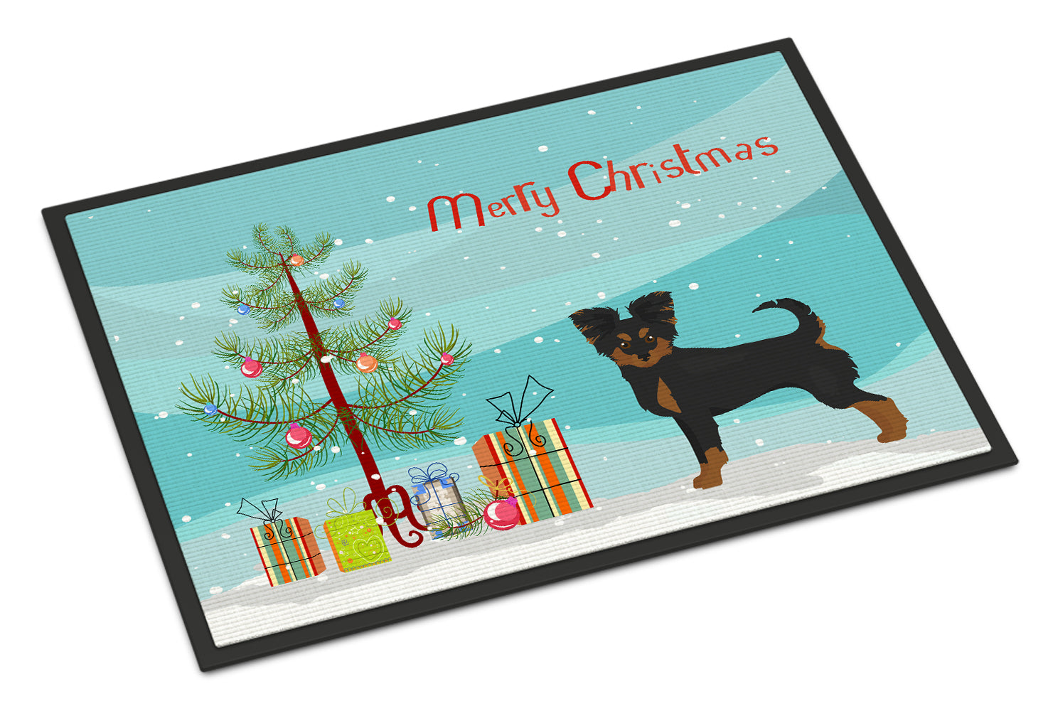 Decorate your space with our Christmas Chion artwork on a Doormat. Welcome your guests in style with our Artwork Door Mat, designed to withstand almost any weather condition. This mat, measuring approximately 24 by 36 inches, is held together by durable black binding tape. Its top layer, composed of polyester felt, is dyed with the eye-catching image you see on the mat. A few layers below provide the mat with stability, while its rubber bottom is stamped to help prevent slipping and ensures safety. Our mat works wonderfully as both an indoor or outdoor door mat. For cleaning, simply hose it off with water or use a power washer - no need for any cleaner that produces suds. Avoid scrubbing with a brush, instead, opt for the vacuum on floor setting. Designed manufactured and printed in the USA, this mat is a perfect addition to your porch, outdoor kitchen, entryway, or any indoor space. Its unique design makes it a charming decorative rug that greets your guests and adds a stylish touch to your home decor.