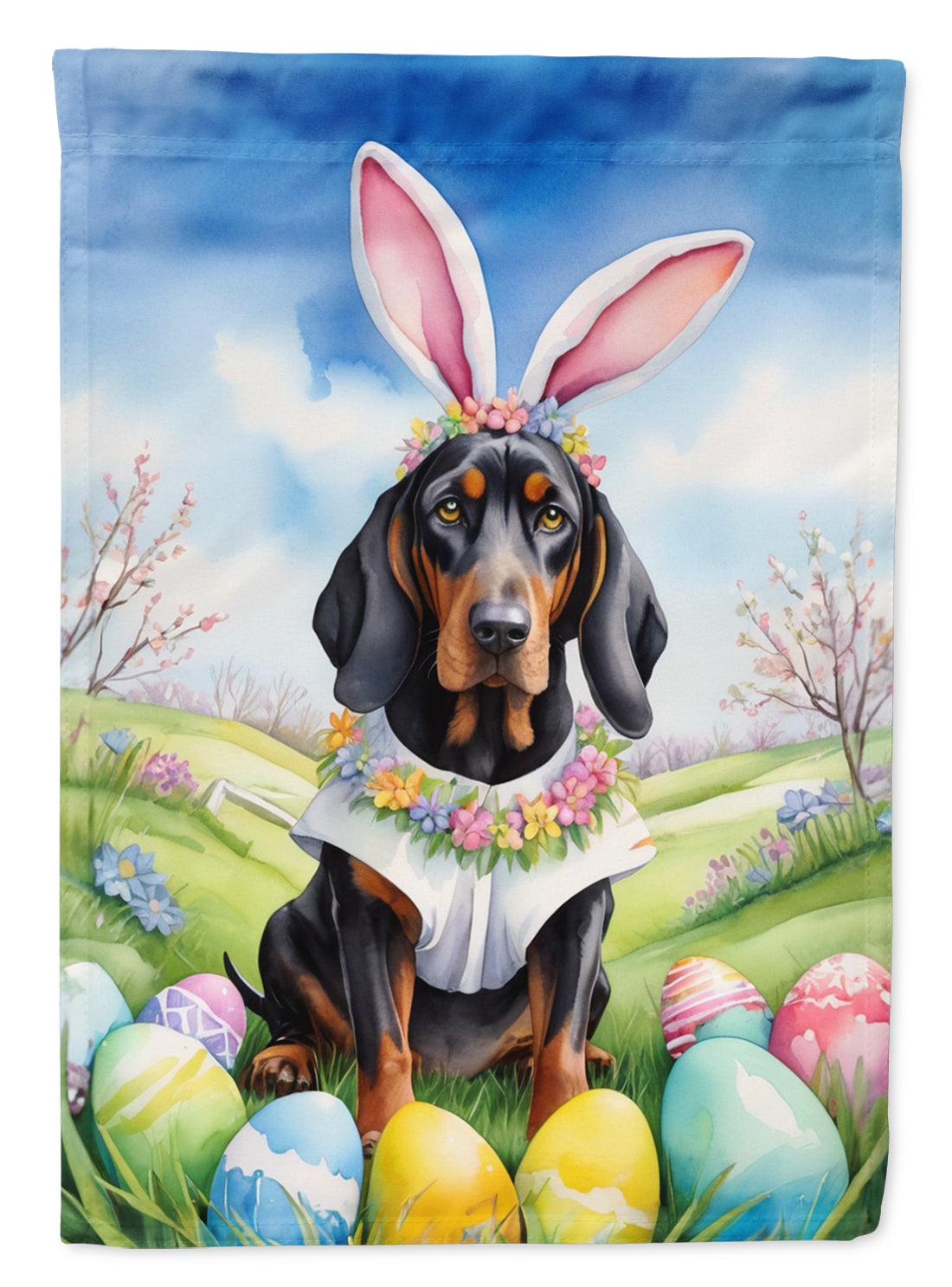 Decorate your space with our Easter Black and Tan Coonhound artwork on a Large Flag. Presenting our Heavy Duty Polyester House Size Decorative Sleeve Pole Flag, a vibrant addition to enhance the aesthetic appeal of your home. This large decorative flag, measuring approximately 28 x 40 inches, offers ample coverage and visibility. Each flag is meticulously sewn and made individually, ensuring a unique piece that may slightly vary in size. It's a sleeve pole flag, designed to fit a standard decorative flag pole effortlessly. Please note that the flag pole and bracket are not included and should be purchased separately. What sets our flag apart is its dual-sided print. The design is mirrored on both sides of the fabric, allowing for uniform visibility regardless of the angle. Printed in full color, our flag showcases vibrant hues that truly stand out. To ensure lasting vibrancy and durability, the dyes are heat-set into the fabric. This ensures your flag remains bright and captivating through various weather conditions. Elevate the look of your home with our Heavy Duty Polyester House Size Decorative Sleeve Pole Flag!