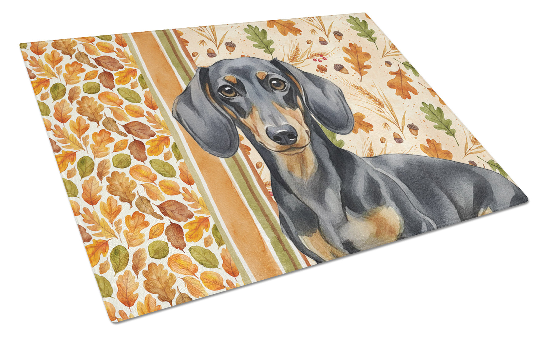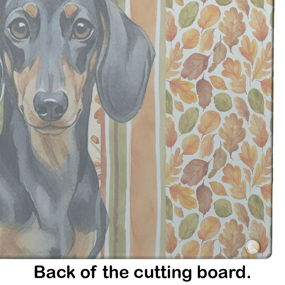 Glass Cutting Board featuring breed specific Dachshund artwork. Celebrate Thanksgiving with this Thanksgiving Cutting Board. Introduce your kitchen to the vibrant, large Decorative Glass Cutting Board from Caroline's Treasures. Crafted from resilient tempered glass, this board is not only a utilitarian necessity but also a colorful art piece. With its generous dimensions of 15 inches in height and 12 inches in length, it offers ample space for all your cutting needs. Every piece showcases captivating artwork from distinguished artists, bringing an aesthetic edge to your kitchen. Beyond its attractive design, this cutting board ensures your countertop stays pristine and unscathed, owing to its heat-resistant properties. Engineered with user convenience in mind, it features non-skid feet for stability, and rounded corners for additional safety. Its robust construction renders it virtually unbreakable, guaranteeing longevity. The board comes with protective feet bumpers, maintaining its position during use. This product is recommended to be hand washed only. Proudly printed and assembled in the United States, this cutting board exemplifies superior craftsmanship. With Caroline's Treasures' Decorative Glass Cutting Board, you're investing in a blend of functionality and artistic flair.