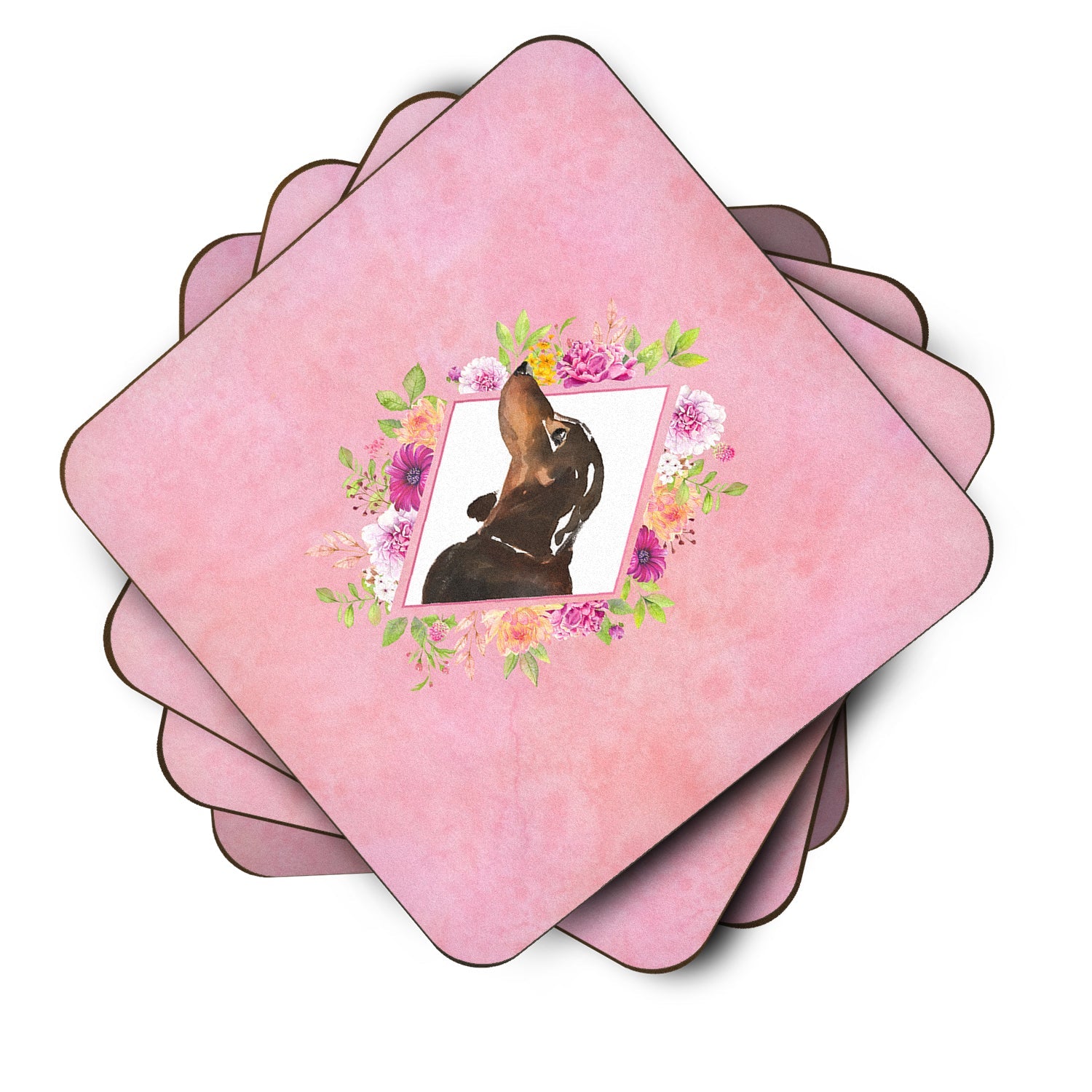 Black and Tan Dachshund Pink Flowers Coasters - Set of 4 Lightweight Foam, Absorbent Drink Coasters  CK4262FC