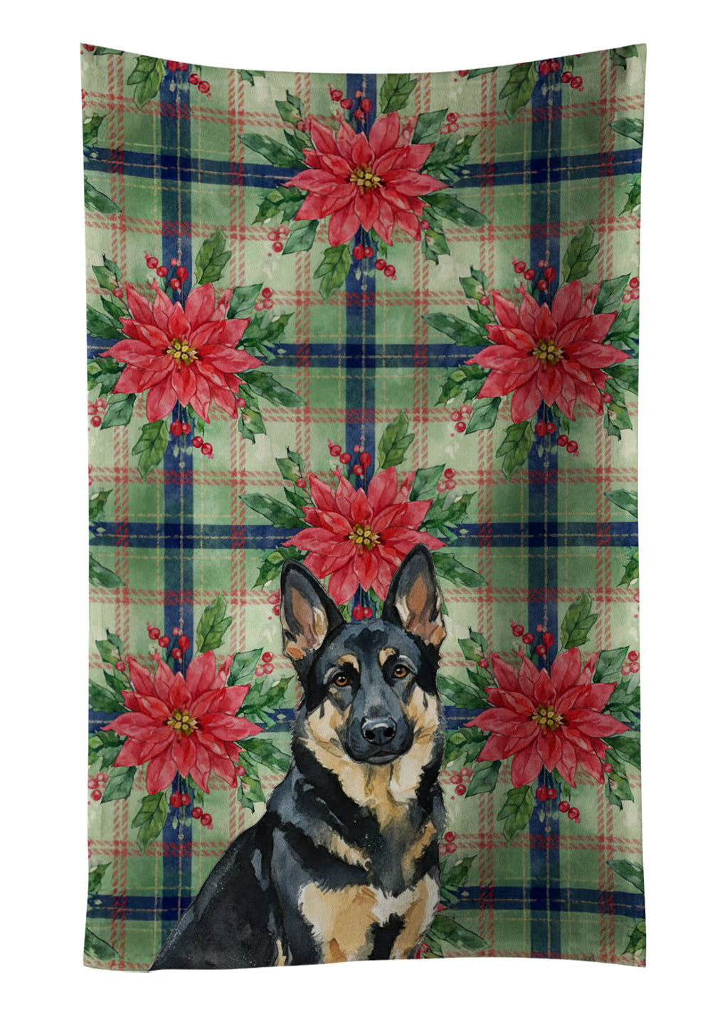 Kitchen Towel featuring breed specific German Shepherd artwork. Celebrate Christmas with this Christmas Kitchen Towel. Bring cozy holiay charm to your sink or powder room with a plush velour towel featuring original watercolor artwork. The front is a soft, color-rich minky polyester that polishes glassware to a brilliant shine; the back is 100% white cotton terry loop for quick absorbency on hands, dishes, and counters. Artwork is dyed into the fibers for lasting color that won’t crack or peel. Finished edges keep the shape wash after wash. Size: 15" x 25". Machine wash; tumble dry low. Designed and printed in the USA.