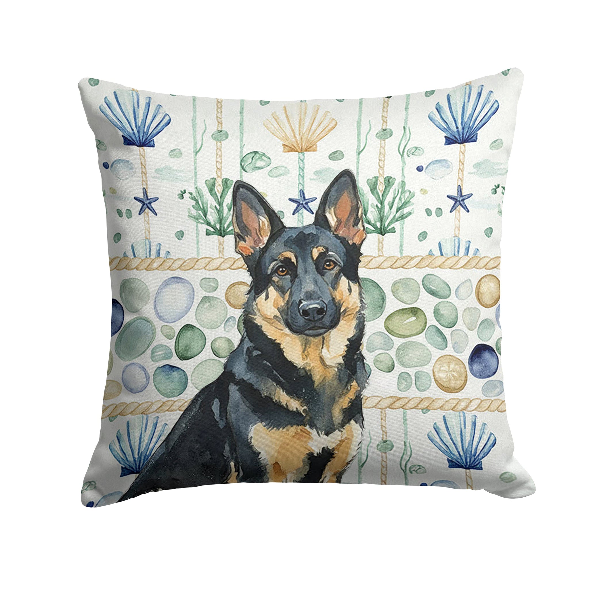Throw Pillow featuring breed specific German Shepherd artwork. Revitalize your outdoor or indoor living space with Caroline's Treasures 18x18 Fabric Decorative Pillow. With a generously sized dimension of approximately 18 inches by 18 inches, this pillow makes a comfortable and aesthetic addition to any seating area. Made from a unique, water-resistant material developed by Caroline's Treasures, the pillow sham is 100% polyester fabric that's durable and ready to weather any condition. Its vibrant, full-color artwork will not fade over time as it is dyed with color-fast dyes. Whether you place it on your patio furniture, porch, veranda, or indoor couch, its soft canvas fabric ensures a cozy experience. The pillow is handcrafted in the United States, featuring a sham created from three pieces of fabric and a polyester insert for enduring shape and overstuffed comfort. Despite being robustly built to endure the outdoors, it is as soft and snug as your favorite indoor cushions. Please note, as all our pillows are handmade, sizes may vary slightly, adding to the charm of this unique decorative item.