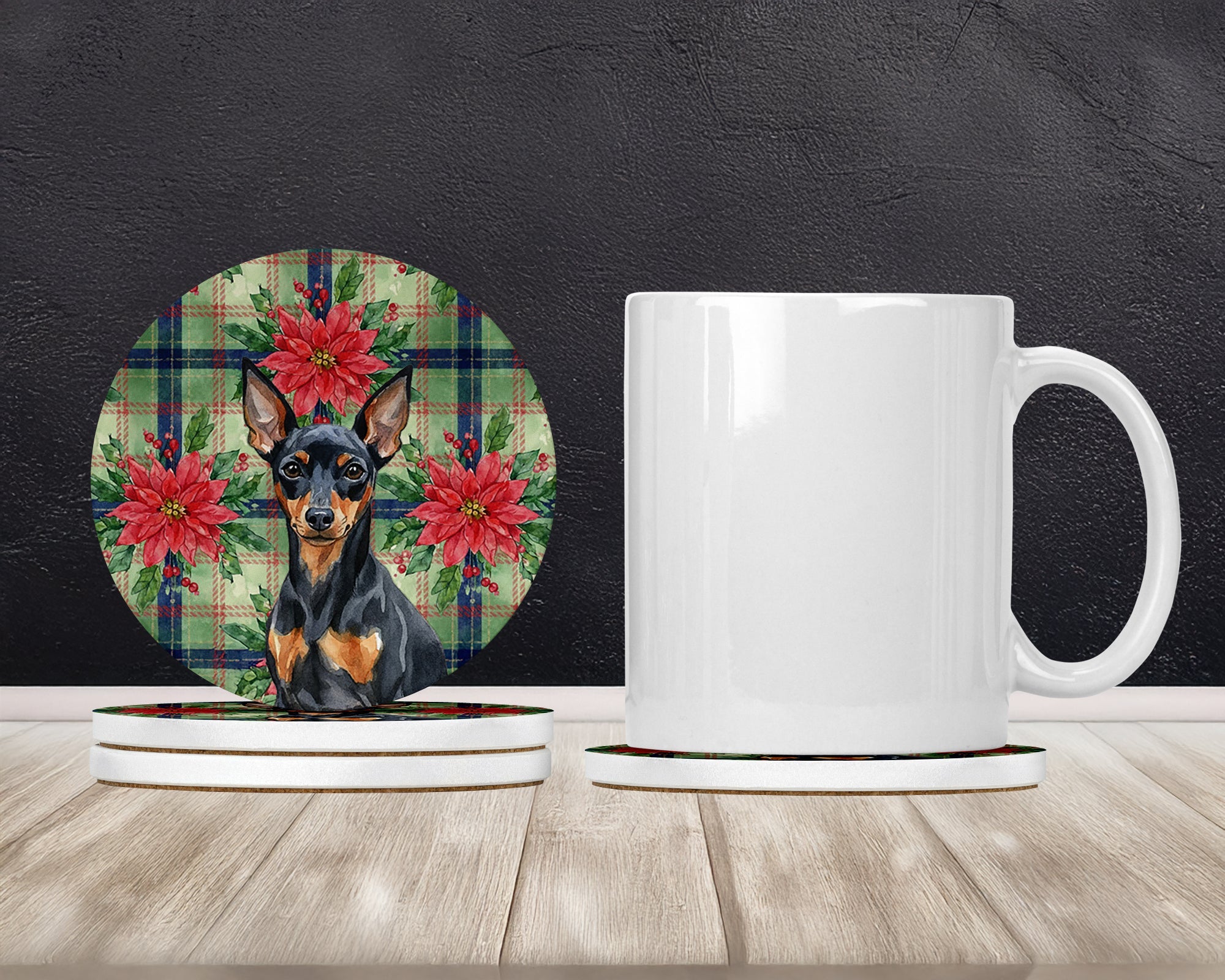 Large Sandstone Coasters Pack of 4 featuring breed specific Miniature Pinscher artwork. Celebrate Christmas with this Christmas Sandstone Coasters Pack of 4. Introducing Caroline's Treasures Large Sandstone Coasters Pack of 4, the perfect addition to your home decor. Each coaster measures nearly 4 inches and is made from absorbent sandstone with a cork backing. Designed and printed in the United States, these coasters feature artwork from Caroline's Treasures' talented artists. Protect your countertops and tables from hot and cold drink condensation with these absorbent coasters. They efficiently absorb moisture, ensuring your surfaces stay dry and clean. Choose from a wide range of designs to update and enhance your decor or give them as a thoughtful gift for any occasion. Cleaning is a breeze�simply wipe the coaster with a damp towel to remove any spills or stains. Each set comes in a brown gift box, making it ready to be wrapped for that special person in your life. These absorbent sandstone coasters also make an excellent housewarming gift, providing both practicality and style. Celebrate birthdays, Mother's Day, Father's Day, Thanksgiving, Christmas, Teacher's Appreciation Day, or simply show someone you care with these versatile and charming coasters. Caroline's Treasures Large Sandstone Coasters Pack of 4 is the perfect happy gift for any occasion.