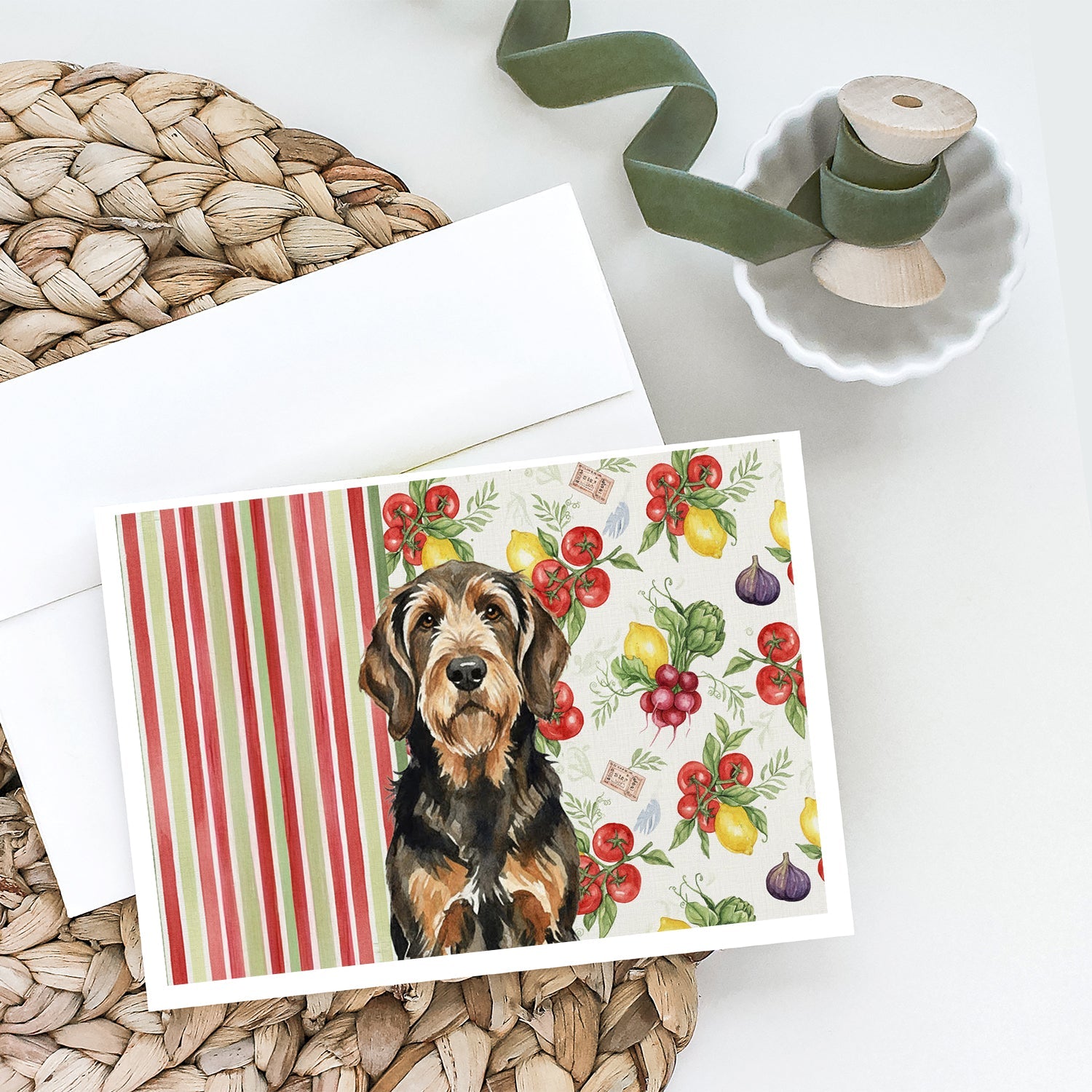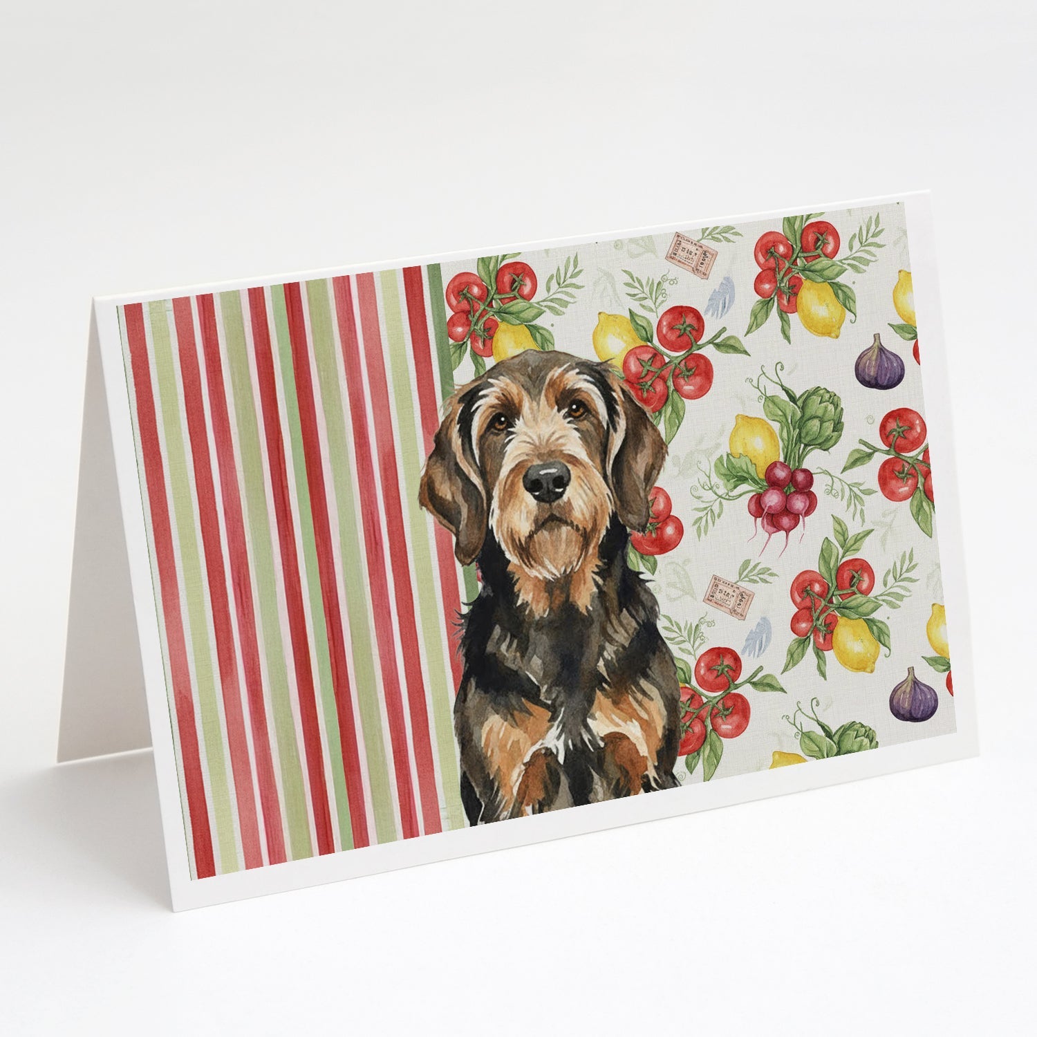Shown here is the Black and Tan Otterhound Vegetables Greeting Cards Pack of 8 from Caroline's Treasures featuring artwork of a Otterhound in a Everyday design. The detailed illustration and vibrant colors make it a standout accent that celebrates both seasonal style and love for the subject. This image features a vibrant watercolor vegetable pattern with tomatoes, lemons, artichokes, figs, radishes, and leafy greens arranged in a repeating design, paired with classic red and green stripes. The bright, garden-fresh palette creates a cheerful, farmhouse-inspired look that feels lively, welcoming, and perfect for kitchen décor. Everyday décor celebrates personal style and the small moments that make a house feel like home. Thoughtful designs add warmth and personality that can be enjoyed year-round. Celebrate special moments with Caroline's Treasures Printed Greeting Card Pack. This pack includes eight beautifully folded 5x7 cards, accompanied by eight matching white envelopes. With blank interiors, these cards provide ample space for your personalized messages and heartfelt holiday greetings. Each card features captivating full-color artwork, meticulously printed in our facility on high-quality 80 lb cover stock or 216 GSM. The super smooth finish of the white cards enhances the visual impact of the artwork, creating a truly stunning presentation. Designed by our talented in-house artists or licensed artists, the artwork on these cards showcases their creativity and attention to detail. From vibrant illustrations to captivating designs, each card tells its own unique story. Whether it's for birthdays, anniversaries, holidays, or any special occasion, Caroline's Treasures Greeting Card Pack is the perfect way to convey your heartfelt sentiments. Share joy, love, and warm wishes with these exquisite cards and make every moment unforgettable. Perfect for: Writing personal messages, everyday correspondence, and thoughtful notes, Dogs-themed stationery collections, or year-round use for Otterhound lovers. Otterhounds are large scent hounds known for their endurance and love of water. This rare breed is admired for its friendly personality, determination, and distinctive appearance. Makes a heartfelt gift for: Otterhound owners, Dogs lovers, Everyday gifts, pet parents, friends who adore their Otterhound, or anyone celebrating Dogs.
