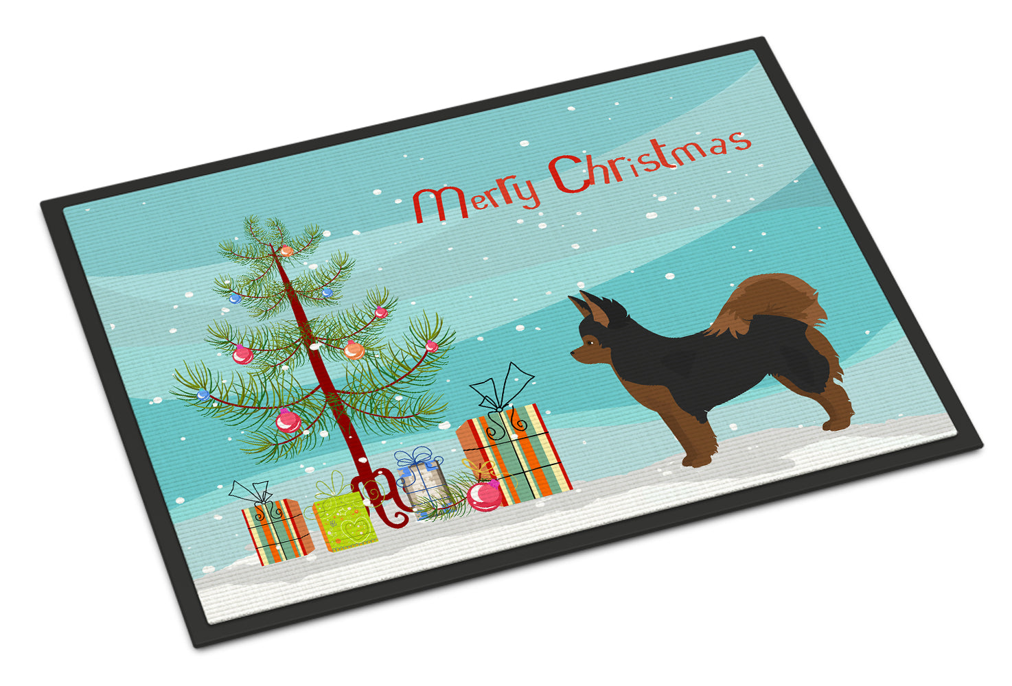 Decorate your space with our Christmas Pomchi artwork on a Doormat. Welcome your guests in style with our Artwork Door Mat, designed to withstand almost any weather condition. This mat, measuring approximately 24 by 36 inches, is held together by durable black binding tape. Its top layer, composed of polyester felt, is dyed with the eye-catching image you see on the mat. A few layers below provide the mat with stability, while its rubber bottom is stamped to help prevent slipping and ensures safety. Our mat works wonderfully as both an indoor or outdoor door mat. For cleaning, simply hose it off with water or use a power washer - no need for any cleaner that produces suds. Avoid scrubbing with a brush, instead, opt for the vacuum on floor setting. Designed manufactured and printed in the USA, this mat is a perfect addition to your porch, outdoor kitchen, entryway, or any indoor space. Its unique design makes it a charming decorative rug that greets your guests and adds a stylish touch to your home decor.