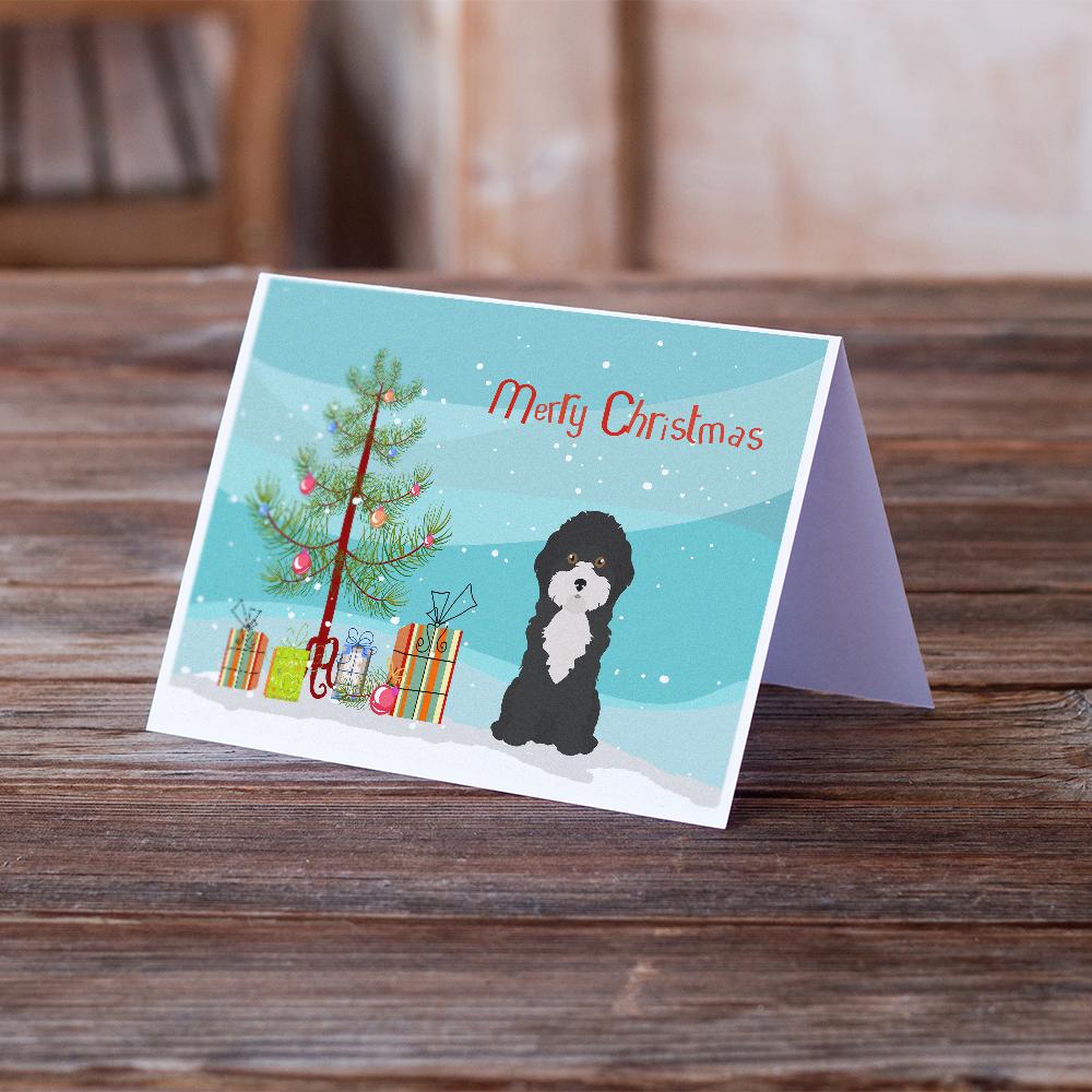 Black and White Cyprus Poodle Christmas Tree Greeting Cards -  Blank Note Cards – 8-Pack of Artist-Designed Cards with Envelopes
