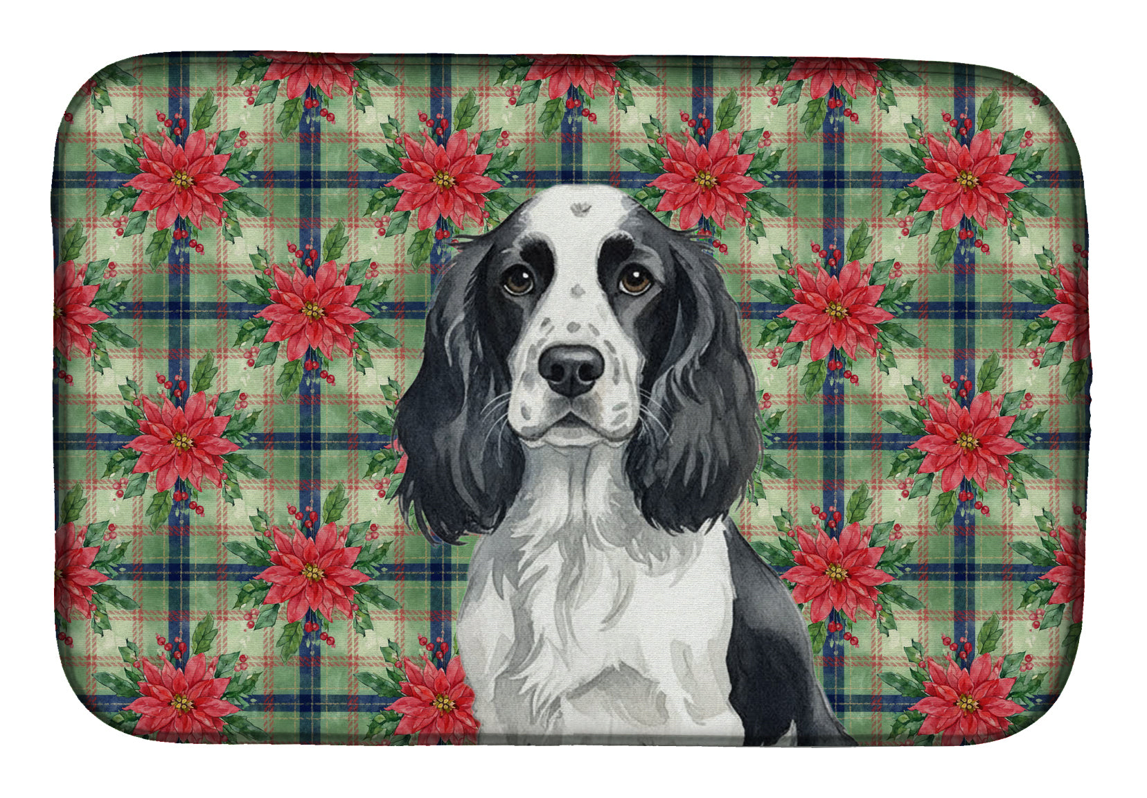 Black and White English Springer Spaniel Christmas PoinsettIas Dish Drying Mat