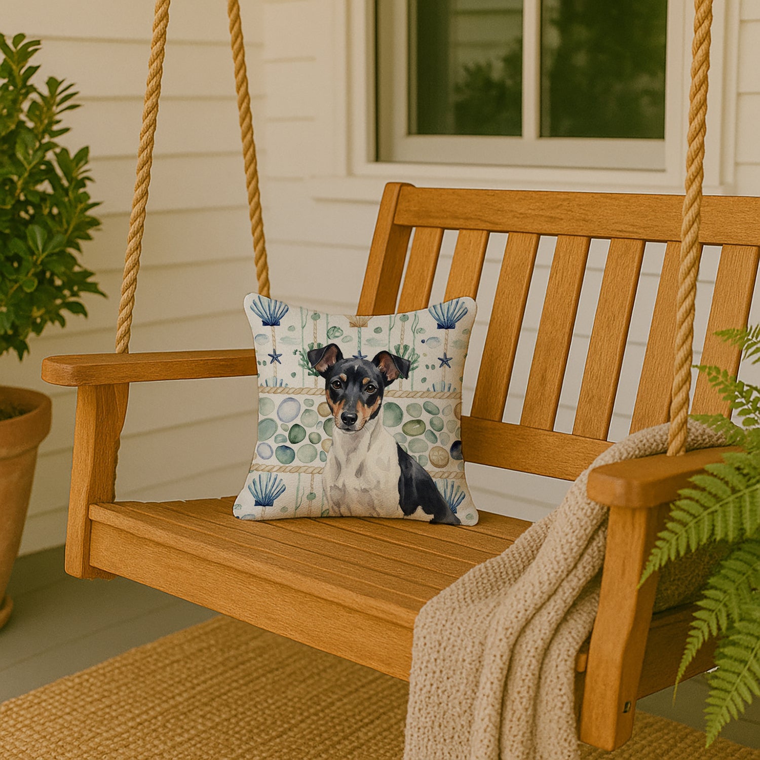 Throw Pillow featuring breed specific Rat Terrier artwork. Add a touch of vibrancy and comfort to your outdoor seating with Caroline's Treasures Fabric Decorative Pillow. Measuring approximately 14 inches by 14 inches, this outdoor pillow is crafted to elevate the appeal of your patio furniture, infusing it with vivid color and artistic flair. The pillow includes a 100% Polyester Fabric sham filled with a quality pillow form to provide superior comfort. Innovatively made from our brand new material, specifically woven for its water resistance, this pillow is designed for durability. The soft canvas fabric offers versatility in use, fit for your indoor couch or your outdoor patio, porch, or veranda. The fabric is dyed with colorfast dyes built for resilience against weather conditions, ensuring the pillow retains its beauty over time. Constructed by sewing three fabric pieces to create a sham, the polyester insert is then nestled inside to form the pillow, resulting in an overstuffed pillow that maintains its shape. Both the sham and the pillow insert are proudly made in the United States. As the pillows are handcrafted, there may be minor variations in size, further enhancing their unique charm. Experience comfort in style with Caroline's Treasures Fabric Decorative Pillow.