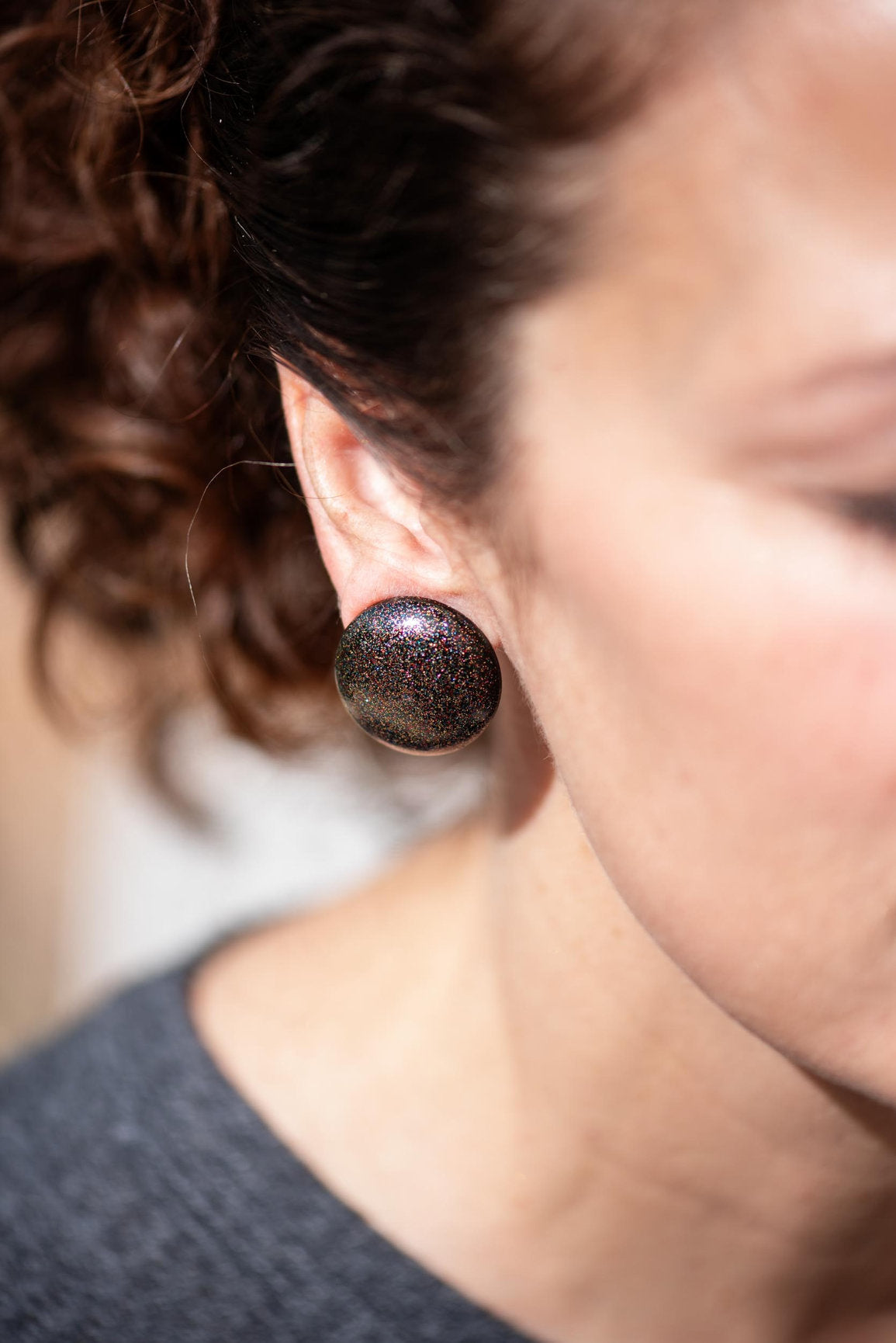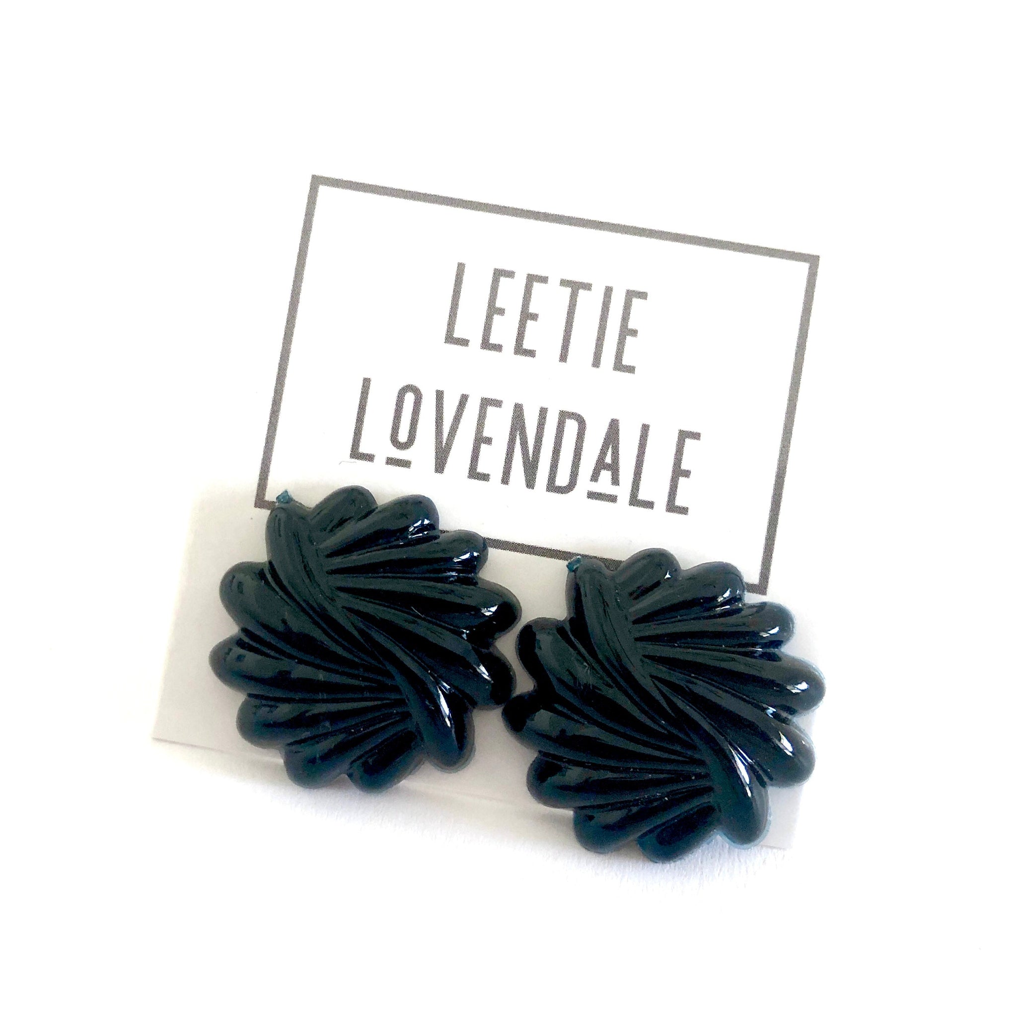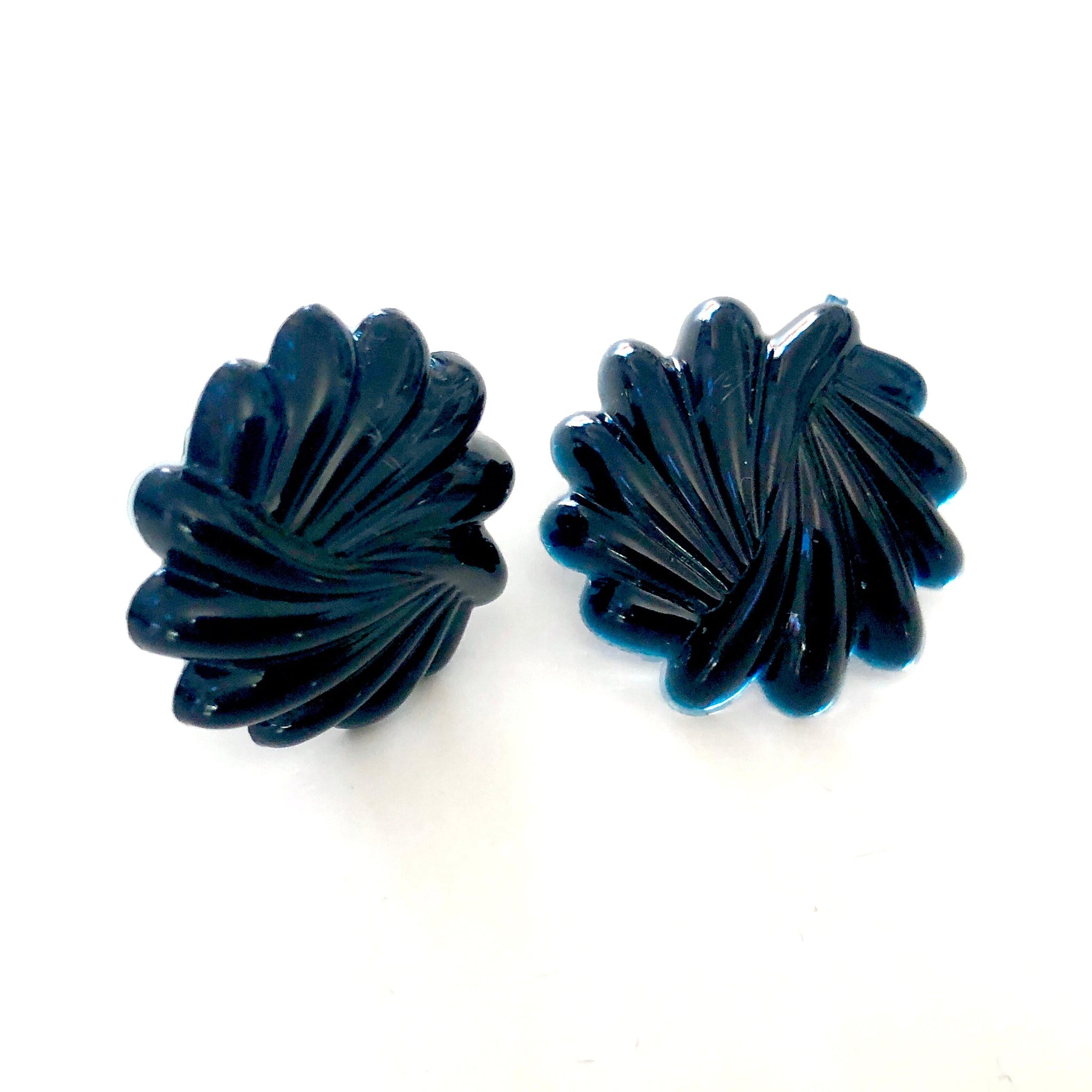 Black carved button style earrings in a perfect size. Each measures just about 24mm in diameter, these stud earrings are the perfect size and style to make a statement. Great size but super light weight! See model wearing this size retro button in another style for size reference.