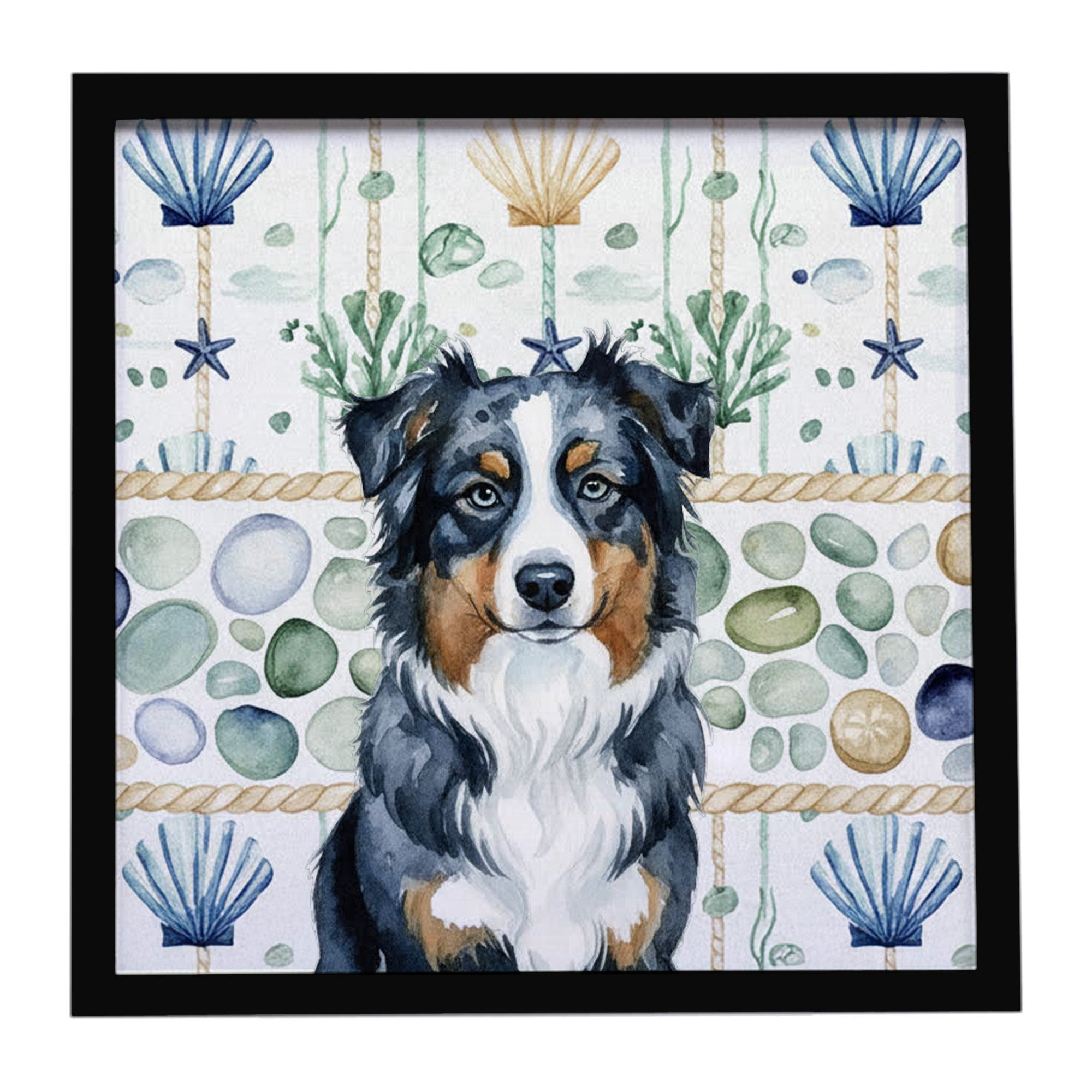 Framed Metal Print featuring breed specific Australian Shepherd artwork. Looking for wall art that’s stylish, safe, and made to last? Our 8x8 Framed Metal Prints are designed with modern living in mind. Each piece features original artwork printed on durable aluminum, set in a sleek frame that measures 3/4 inch deep for a clean, contemporary finish. Unlike glass prints, these are lightweight, shatter-free, and family-safe. Perfect for kitchens, bathrooms, or covered porches where traditional décor might not hold up. The built-in sawtooth hanger molded into the back makes it easy to hang right out of the box—just use your own nails or screws. Cleaning is simple too: a quick wipe with a damp cloth and mild soap keeps your artwork looking vibrant. Proudly made in Alabama, every print supports our community of artists while adding personality and charm to your home.