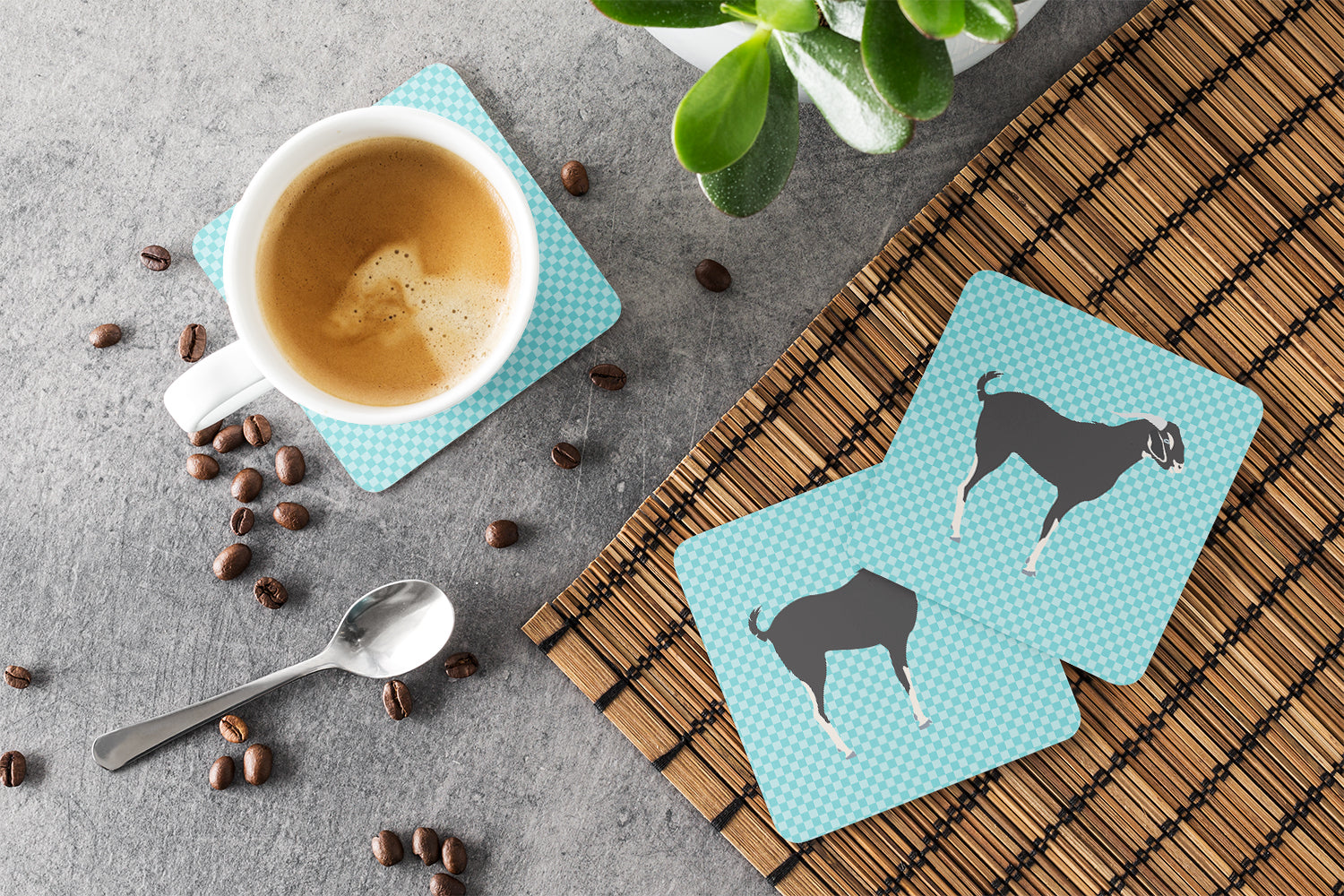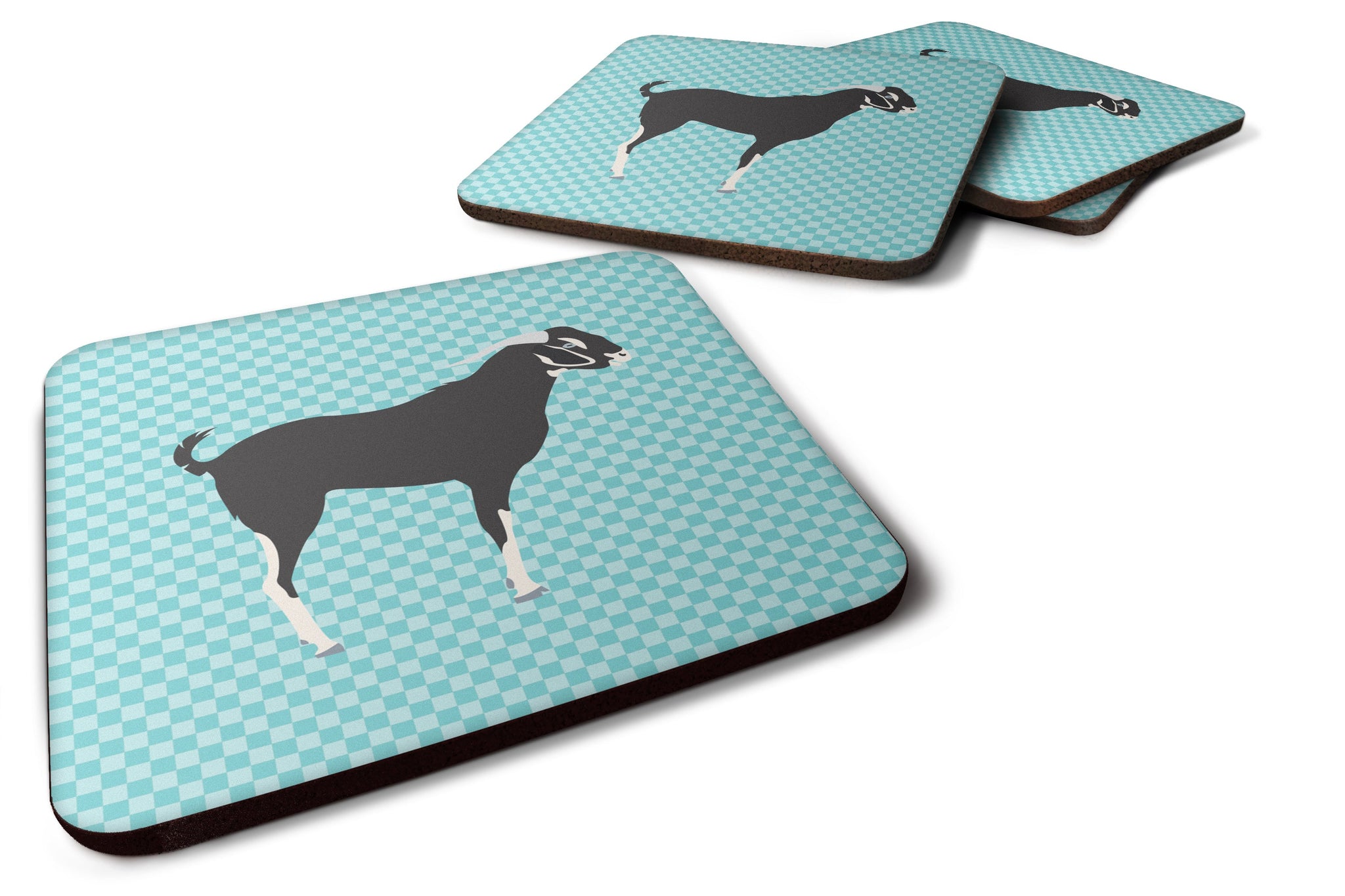 Decorate your space with our Black Bengal Goat artwork on a Coaster set. Presenting our Set of 4 Foam Coasters, a stylish and practical addition to your table setting. Each square coaster, measuring 3 1/2 inches by 3 1/2 inches, is perfectly sized to accommodate various drinkware, from coffee mugs to tumblers. These coasters stand out with their full-color artwork, permanently dyed onto the material for a vibrant and fade-resistant finish. They're not just functional, they're a fashionable statement, adding a touch of flair to any gathering or event. Our foam coasters serve a dual purpose - they protect your table from water stains and are perfect for both hot and cold drinks. The material used is similar to that of our high-quality mouse pads, ensuring durability and heat resistance. These coasters are easy to maintain - simply wash them in the top of your dishwasher and lay flat to dry. The design won't come off, ensuring they retain their vivid colors for years. Pair them with one of our insulated coolers or huggers for a cohesive, thoughtful gift set. Enhance your beverage experience with our Set of 4 Foam Coasters.