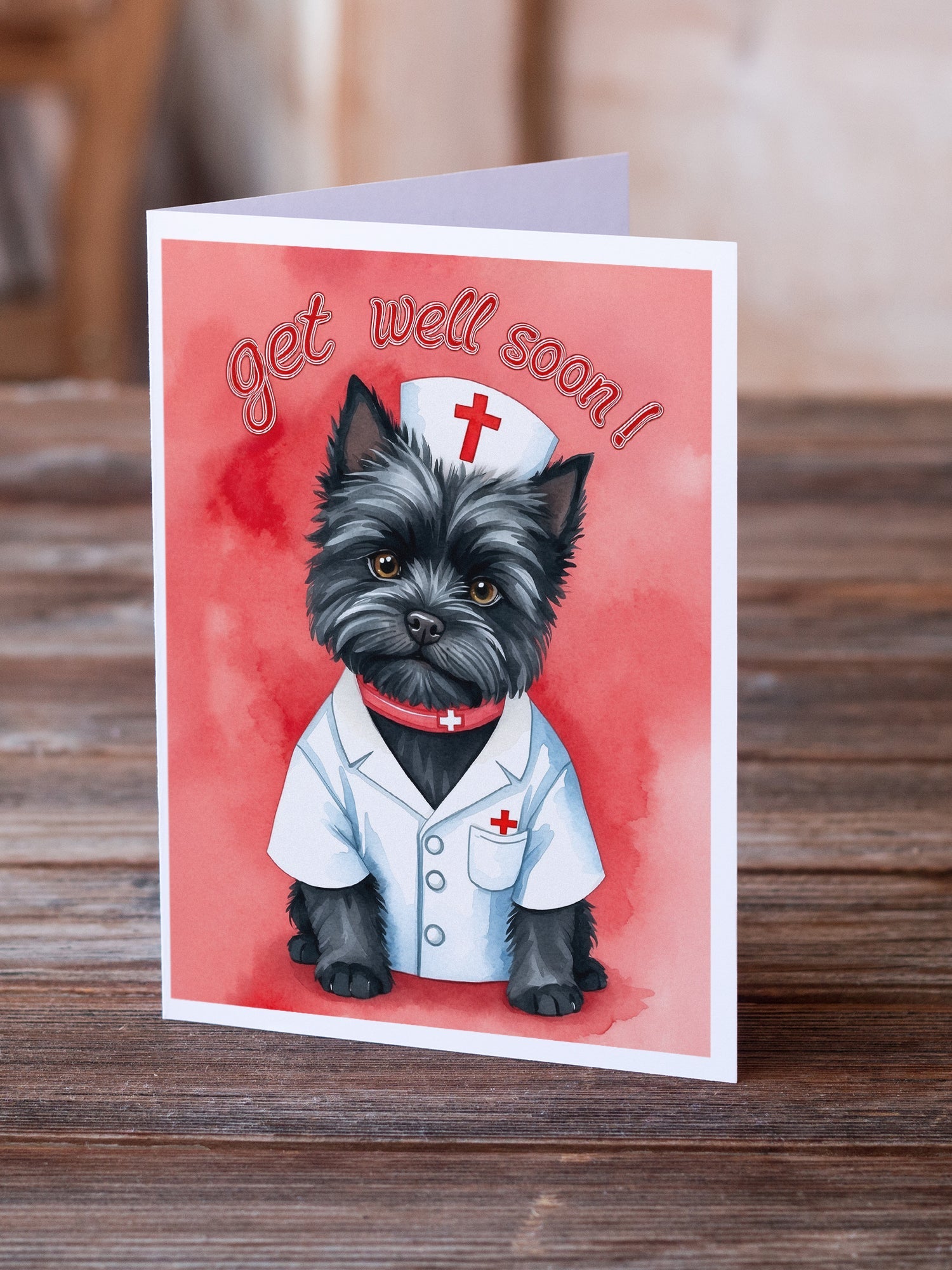 Greeting Cards Pack of 8 featuring breed specific Cairn Terrier artwork. Celebrate Get Well with this Get Well . Celebrate special moments with Caroline's Treasures Printed Greeting Card Pack. This pack includes eight beautifully folded 5x7 cards, accompanied by eight matching white envelopes. With blank interiors, these cards provide ample space for your personalized messages and heartfelt holiday greetings. Each card features captivating full-color artwork, meticulously printed in our facility on high-quality 80 lb cover stock or 216 GSM. The super smooth finish of the white cards enhances the visual impact of the artwork, creating a truly stunning presentation. Designed by our talented in-house artists or licensed artists, the artwork on these cards showcases their creativity and attention to detail. From vibrant illustrations to captivating designs, each card tells its own unique story. Whether it's for birthdays, anniversaries, holidays, or any special occasion, Caroline's Treasures Greeting Card Pack is the perfect way to convey your heartfelt sentiments. Share joy, love, and warm wishes with these exquisite cards and make every moment unforgettable.