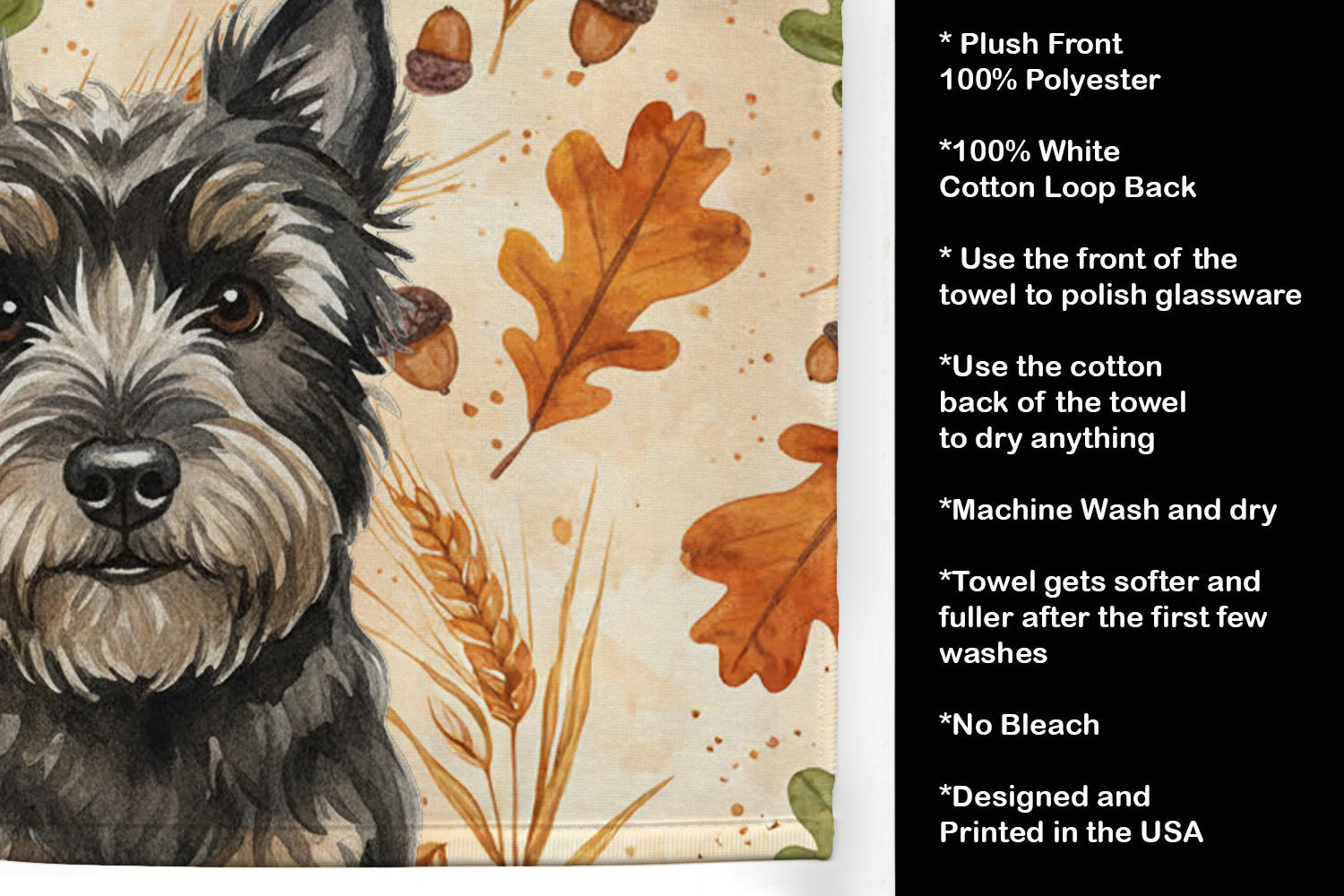 Kitchen Towel featuring breed specific Cairn Terrier artwork. Celebrate Thanksgiving with this Thanksgiving Kitchen Towel. Bring cozy fall charm to your sink or powder room with a plush velour towel featuring original watercolor artwork. The front is a soft, color-rich minky polyester that polishes glassware to a brilliant shine; the back is 100% white cotton terry loop for quick absorbency on hands, dishes, and counters. Artwork is dyed into the fibers for lasting color that won’t crack or peel. Finished edges keep the shape wash after wash. Size: 15" x 25". Machine wash; tumble dry low. Designed and printed in the USA.