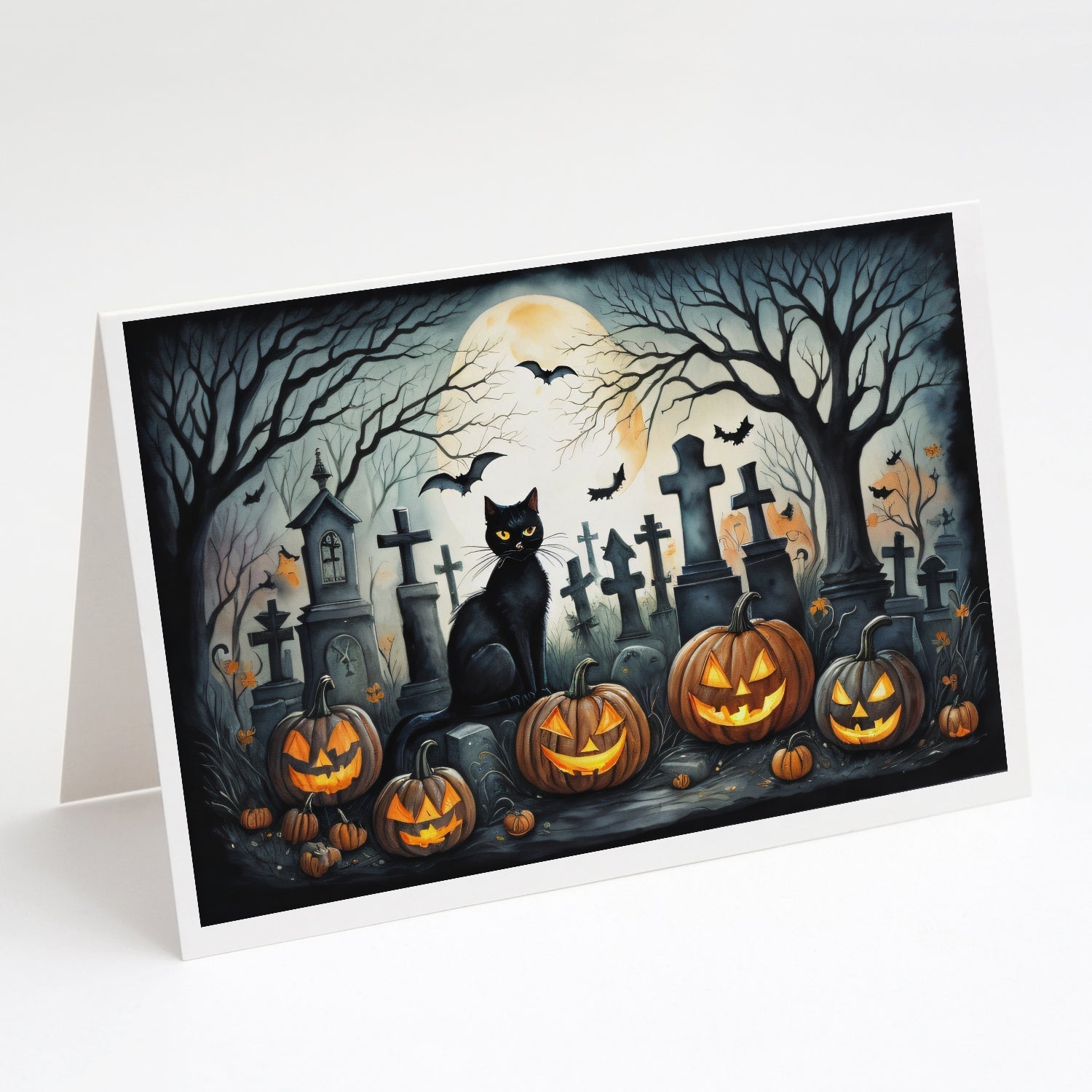 Black Cat Spooky Halloween Greeting Cards -  Blank Note Cards – 8-Pack of Artist-Designed Cards with Envelopes