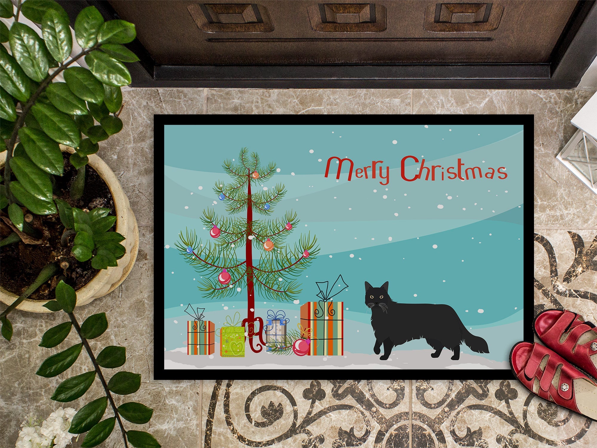 Decorate your space with our Christmas Chantilly Tiffany artwork on a Doormat. Welcome your guests in style with our Artwork Door Mat, designed to withstand almost any weather condition. This mat, measuring approximately 18 by 27 inches, is held together by durable black binding tape. Its top layer, composed of polyester felt, is dyed with the eye-catching image you see on the mat. A few layers below provide the mat with stability, while its rubber bottom is stamped to help prevent slipping and ensures safety. Our mat works wonderfully as both an indoor or outdoor door mat. For cleaning, simply hose it off with water or use a power washer - no need for any cleaner that produces suds. Avoid scrubbing with a brush, instead, opt for the vacuum on floor setting. Designed manufactured and printed in the USA, this mat is a perfect addition to your porch, outdoor kitchen, entryway, or any indoor space. Its unique design makes it a charming decorative rug that greets your guests and adds a stylish touch to your home decor.