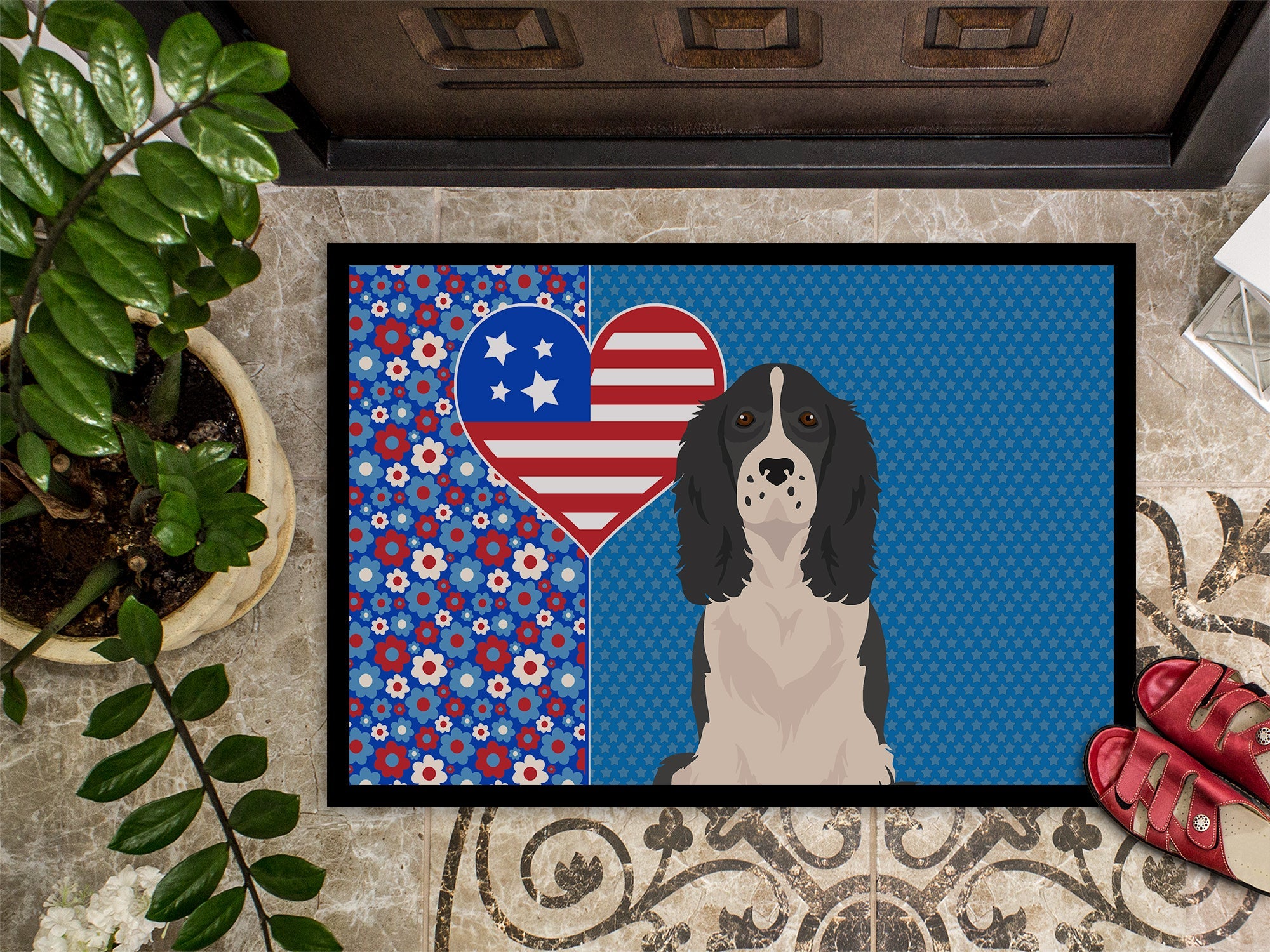 Black English Springer Spaniel USA American Doormat - 24x36 Decorative Floor Mat – Indoor/Outdoor Rug with Artistic Flair