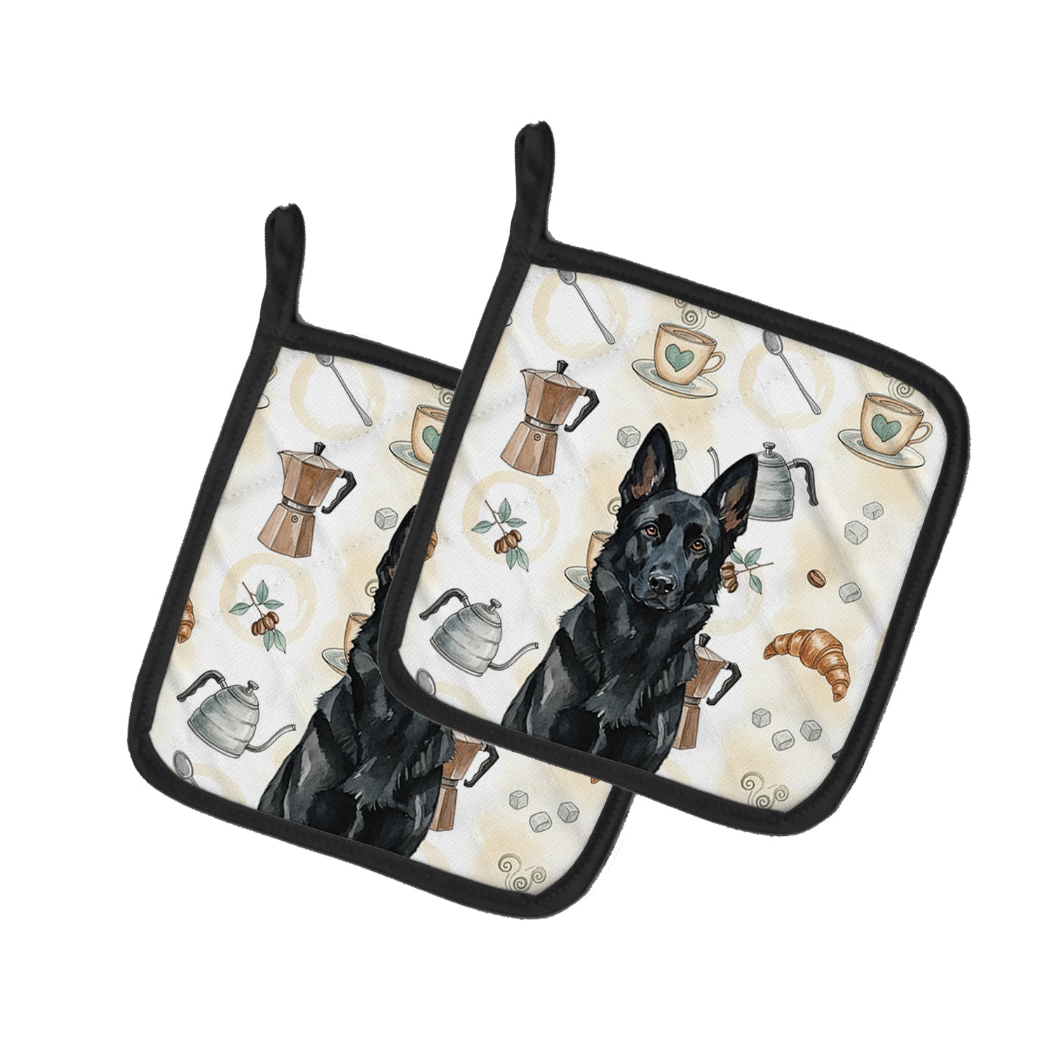 Black German Shepherd Coffee Bar Pair of Pot Holders