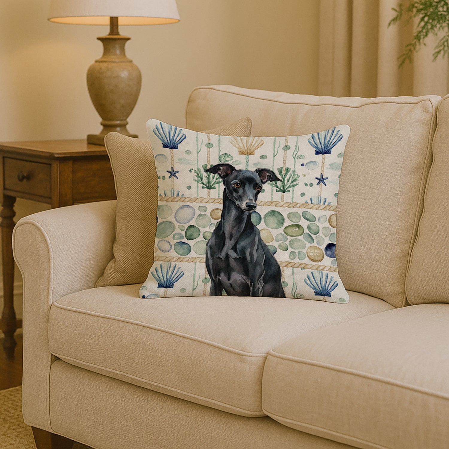 Throw Pillow featuring breed specific Italian Greyhound artwork. Add a touch of vibrancy and comfort to your outdoor seating with Caroline's Treasures Fabric Decorative Pillow. Measuring approximately 14 inches by 14 inches, this outdoor pillow is crafted to elevate the appeal of your patio furniture, infusing it with vivid color and artistic flair. The pillow includes a 100% Polyester Fabric sham filled with a quality pillow form to provide superior comfort. Innovatively made from our brand new material, specifically woven for its water resistance, this pillow is designed for durability. The soft canvas fabric offers versatility in use, fit for your indoor couch or your outdoor patio, porch, or veranda. The fabric is dyed with colorfast dyes built for resilience against weather conditions, ensuring the pillow retains its beauty over time. Constructed by sewing three fabric pieces to create a sham, the polyester insert is then nestled inside to form the pillow, resulting in an overstuffed pillow that maintains its shape. Both the sham and the pillow insert are proudly made in the United States. As the pillows are handcrafted, there may be minor variations in size, further enhancing their unique charm. Experience comfort in style with Caroline's Treasures Fabric Decorative Pillow.