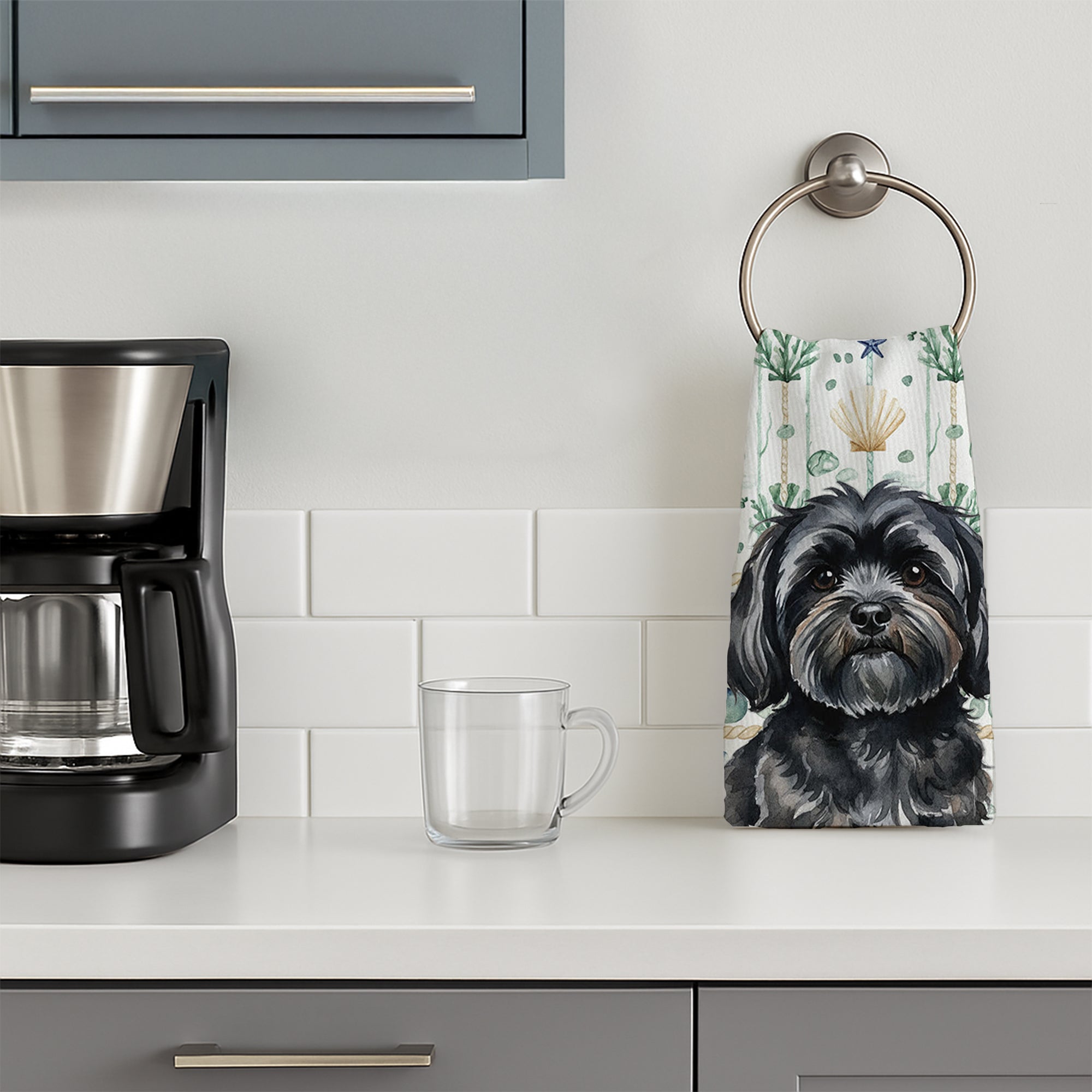 Black Lhasa Apso Coastal Sea Glass Kitchen Towel