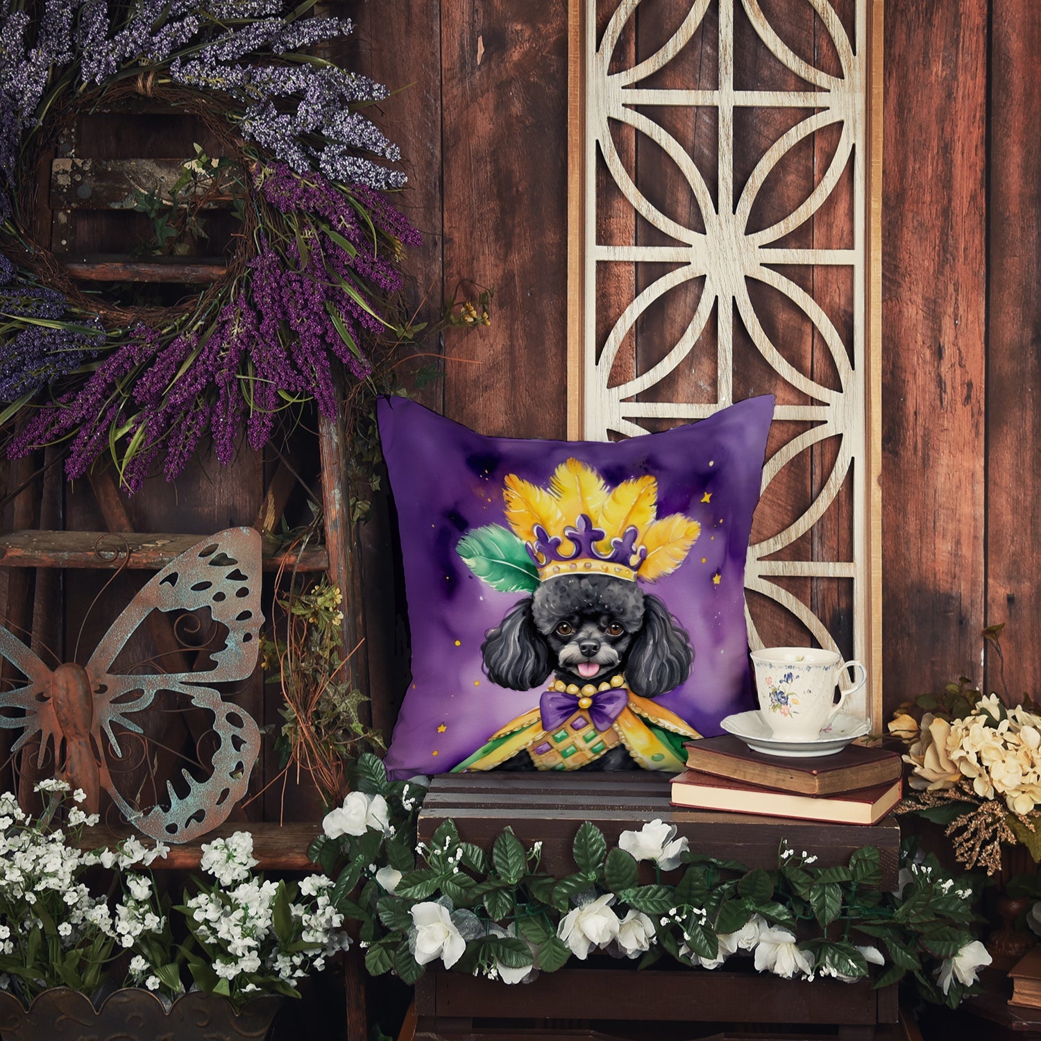 Throw Pillow featuring breed specific Poodle artwork. Celebrate Mardi Gras with this Mardi Gras Pillow. Add a touch of vibrancy and comfort to your outdoor seating with Caroline's Treasures Fabric Decorative Pillow. Measuring approximately 14 inches by 14 inches, this outdoor pillow is crafted to elevate the appeal of your patio furniture, infusing it with vivid color and artistic flair. The pillow includes a 100% Polyester Fabric sham filled with a quality pillow form to provide superior comfort. Innovatively made from our brand new material, specifically woven for its water resistance, this pillow is designed for durability. The soft canvas fabric offers versatility in use, fit for your indoor couch or your outdoor patio, porch, or veranda. The fabric is dyed with colorfast dyes built for resilience against weather conditions, ensuring the pillow retains its beauty over time. Constructed by sewing three fabric pieces to create a sham, the polyester insert is then nestled inside to form the pillow, resulting in an overstuffed pillow that maintains its shape. Both the sham and the pillow insert are proudly made in the United States. As the pillows are handcrafted, there may be minor variations in size, further enhancing their unique charm. Experience comfort in style with Caroline's Treasures Fabric Decorative Pillow.