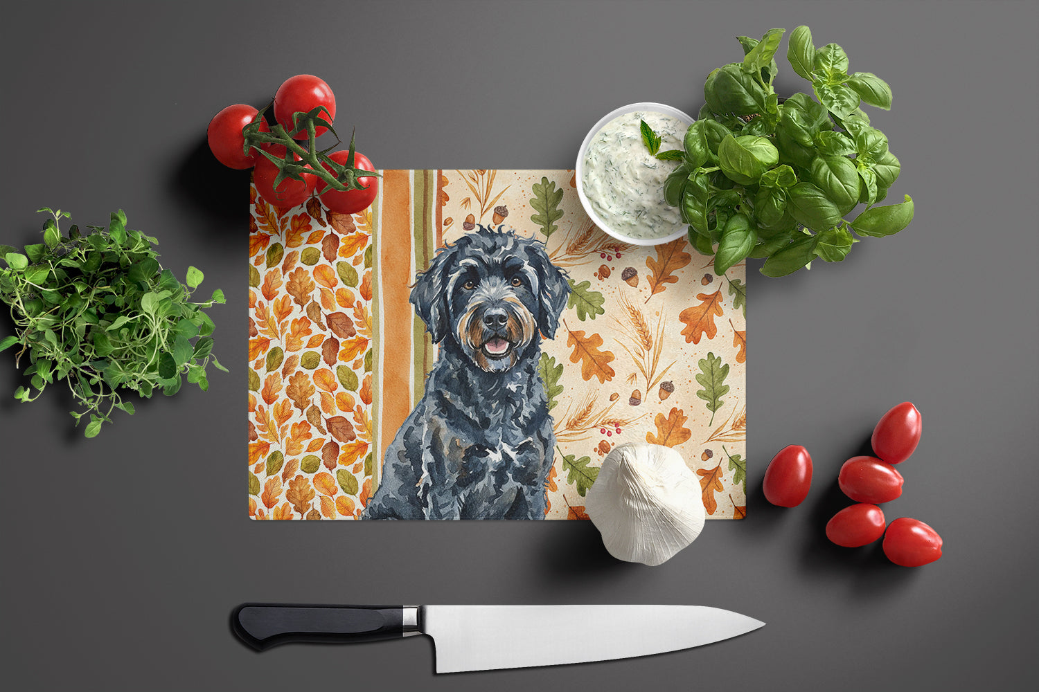 Glass Cutting Board featuring breed specific Portuguese Water Dog artwork. Celebrate Thanksgiving with this Thanksgiving Cutting Board. Introduce your kitchen to the vibrant, large Decorative Glass Cutting Board from Caroline's Treasures. Crafted from resilient tempered glass, this board is not only a utilitarian necessity but also a colorful art piece. With its generous dimensions of 15 inches in height and 12 inches in length, it offers ample space for all your cutting needs. Every piece showcases captivating artwork from distinguished artists, bringing an aesthetic edge to your kitchen. Beyond its attractive design, this cutting board ensures your countertop stays pristine and unscathed, owing to its heat-resistant properties. Engineered with user convenience in mind, it features non-skid feet for stability, and rounded corners for additional safety. Its robust construction renders it virtually unbreakable, guaranteeing longevity. The board comes with protective feet bumpers, maintaining its position during use. This product is recommended to be hand washed only. Proudly printed and assembled in the United States, this cutting board exemplifies superior craftsmanship. With Caroline's Treasures' Decorative Glass Cutting Board, you're investing in a blend of functionality and artistic flair.