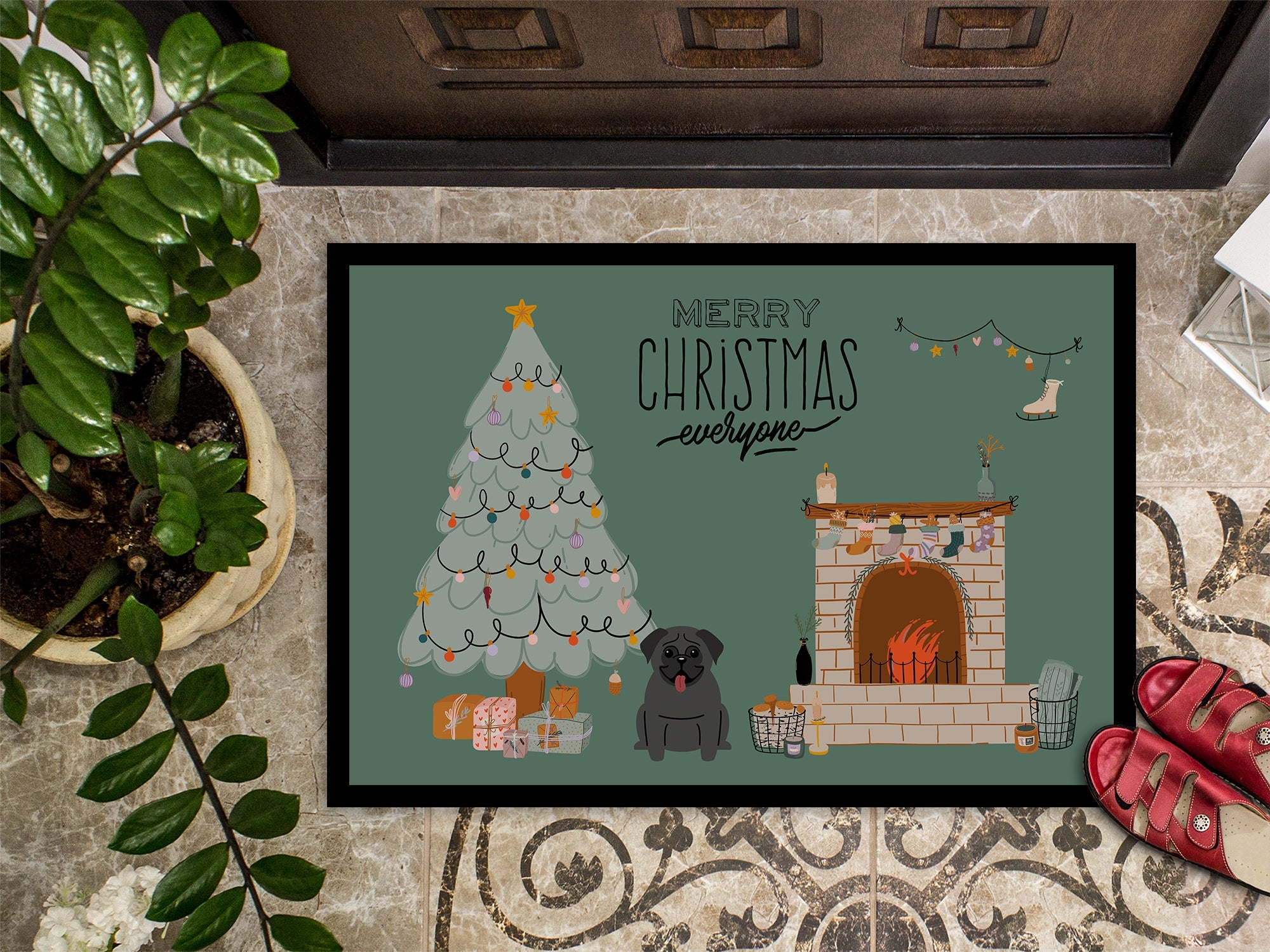 Black Pug Christmas Everyone Doormat - 18x27 Decorative Floor Mat – Indoor/Outdoor Rug with Artistic Flair CK7569MAT