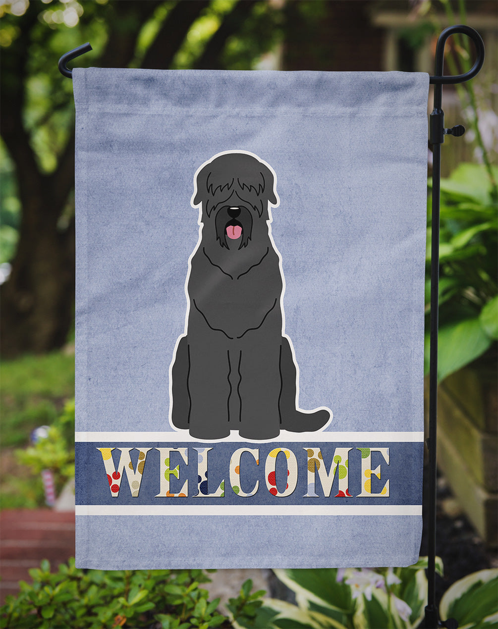 Decorate your space with our Black Russian Terrier artwork on a Garden Flag. Enhance the beauty of your garden, patio, or yard with Caroline's Treasures Decorative Garden Flag, proudly made in the USA. Crafted from two pieces of thick, double-sided polyester fabric, this 2-ply garden flag is designed to withstand various weather conditions, making it water-resistant and weatherproof. Featuring correctly readable words on both sides, this garden flag offers a delightful visual experience from any angle. With its heavier weight, it stands out among other garden flags, ensuring stability and durability even in wind, rain, and snow. Measuring approximately 11 1/4 inches by 15 1/2 inches, this flag allows you to personalize your outdoor decor. It comes with a 1 1/2-inch sleeve sewn in, allowing easy attachment to any standard garden flag stand or garden size porch hanger (sold separately). Make a statement in your outdoor space with Caroline's Treasures Decorative Garden Flag, a vibrant and high-quality flag that adds color and personality to your surroundings. Proudly made in the USA, it's a symbol of quality craftsmanship and attention to detail.
