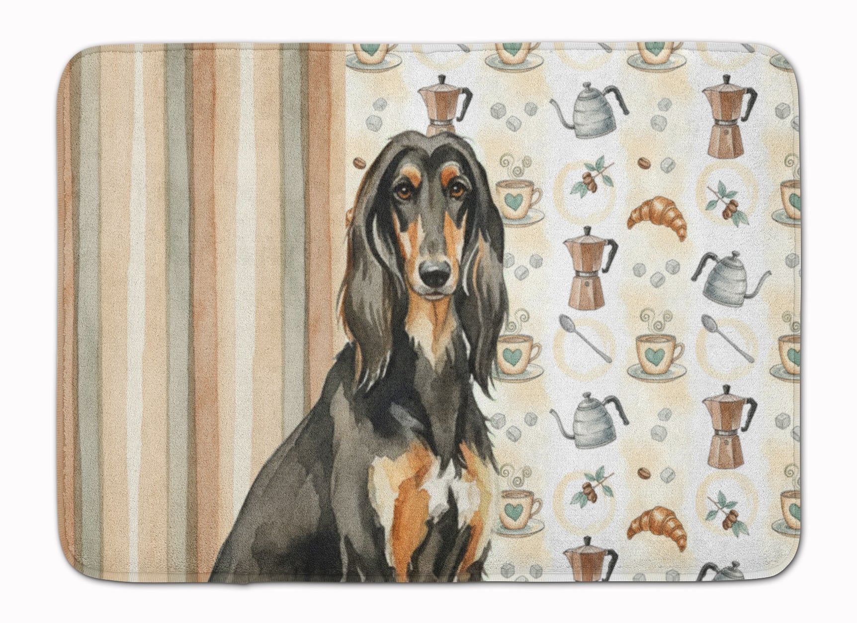 Shown here is the Black & Tan Afghan Hound Coffee Bar Memory Foam Kitchen Mat from Caroline's Treasures featuring artwork of a Afghan Hound in a Everyday design. The detailed illustration and vibrant colors make it a standout accent that celebrates both seasonal style and love for the subject. This image features a cozy watercolor coffee-themed pattern with illustrated mugs, moka pots, kettles, croissants, coffee beans, and sugar cubes arranged in a repeating design. Soft neutral tones with warm browns, creams, and subtle sage accents create an inviting, café-inspired look that feels comforting and relaxed. Everyday décor celebrates personal style and the small moments that make a house feel like home. Thoughtful designs add warmth and personality that can be enjoyed year-round. Transform your floor into a work of art with Caroline's Treasures' Memory Foam Mat. This mat offers not only a stunning visual appeal but also a luxurious, plush feel that's incredibly comfortable to the touch. It's a versatile, machine-washable mat designed for both bath and kitchen use, ensuring you experience the best in comfort and convenience. Care Instructions: Maintaining this memory foam mat is a breeze. Simply follow the care instructions on the product tag. It's recommended to wash in cold water and dry on a low-temperature setting in the dryer. This ensures the mat retains its quality and longevity, allowing you to enjoy its beauty and comfort for a long time. Caroline's Treasures' Memory Foam Mat Machine Washable is the perfect blend of artistry, comfort, and practicality, making it a standout addition to any space. Upgrade your home decor with this versatile and stylish mat today. Afghan Hounds are elegant sighthounds recognized for their long flowing coats, graceful movement, and dignified presence. Known for their independent nature and striking beauty, this ancient breed is admired by dog lovers who appreciate refinement and individuality. Makes a heartfelt gift for: Afghan Hound owners, Dogs lovers, Everyday gifts, pet parents, friends who adore their Afghan Hound, or anyone celebrating Dogs.